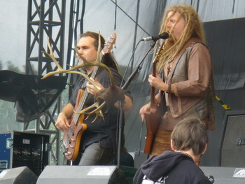 Die trinkfreudigen Hinterwäldler von Korpiklaani setzten die mit Tyr am Vortag begonnene Verlängerung der erfolgreichen "Paganfest"-Tour vom Frühjahr (an der sich neben diesen auch Eluveitie und Ensiferum beteiligt hatten) fort. Bevor die Party allerdings losgehen konnte, musste man noch geschlagene 10 Minuten der Spielzeit auf die Beseitigung technischer Mängel verwenden; um die verlorene Zeit aufzuholen, wurde auf Ansagen nahezu komplett verzichtet und stattdessen eine starke Mischung aus bewährten Krachern wie dem nach "Beer Beer" aus "Wooden Pints" schreienden "Happy Little Boozer" und brandneuem Material (darunter das auch als Single erschienene "Keep on Gallopping") auf das feierwütige Publikum abgefeuert. Durch die leicht verständliche Kernaussage geriet der Auftritt schnell zum Selbstläufer, und sowohl die Frequenz an Crowdsurfern als auch der Absatz an Gerstensaft erreichten binnen Kurzem ein Tagesmaximum.