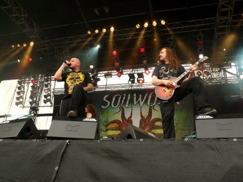 Ansonsten waren Soilwork, wie man sie kennt: Bassist Ola Flink machte seinem Namen wieder alle Ehre, indem er die übliche Hyperaktivität an den Tag legte und (mittlerweile wieder mit langer Mähne) permanent über die Bühne flitzte. Sänger Björn hingegen beschwerte sich eher: Über fehlendes Bier, über die "beschissenen pinken Handtücher" – und letztlich auch über die feiernde Meute, die einfach keine Gasse zur Rollibühne freimachen wollte, wo offenbar Björns Oma saß, die er sehen wollte. Dennoch war der Auftritt durchaus solide, wenngleich mehr ältere Titel wie "No More Angels" durchaus hätten dabei sein können.