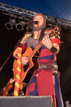 Mit den Grailknights war eine weitere Spaß-Formation ins Party-Zelt gekommen, und wie Feuerschwanz eine gute Stunde vor ihnen hatten auch die vier Herren in den Superheldenkostümen ihr Publikum voll im Griff. Da störte es auch nicht sonderlich, dass der Sound etwas matschig daherkam und hier und da eine fiepende Rückkopplung dazwischen war: Mit fixem Gefrickel, flotten Sprüchen und dem unvermeidlichen Bier-Pferd "Zapf Beauty" machte man sich einmal mehr auf die Suche nach dem heiligen Gral. Reichlich Unterstützung bekamen die heroischen Vier dabei von ihrem getreuen Battlechoir: Trotz der engen Raumverhältnisse brachte das brechend volle Partyzelt eine Lautstärke hin, wie ich sie in all den Jahren noch auf keinem Festival erlebt habe - das hatte schon Stadion-Qualität! Kein Wunder also, dass der Gig für die Grailknights schnell zum Selbstläufer wurde, hatten sie den Zuschauerraum doch von Anfang an auf ihrer Seite; gemeinsam bezwang man alle Bösewichter, die von Zeit zu Zeit über die Bühne und auch durch den Fotograben turnten, reckte anschließend beglückt den wiedererrungenen Gral in die Höhe und verabschiedete sich dankend von einem feierwütigen Battlechoir, das die Vier kaum von der Bühne lassen wollte. (Die Setlist, falls sie überhaupt jemanden interessiert - bei den Grailknights dürfte die Musik eindeutig hinter der Show zurückstehen: Grailquest Gladiators, When Good Turns Evil, Nameless Grave, Sea Song, Moonlight Masquerade.)