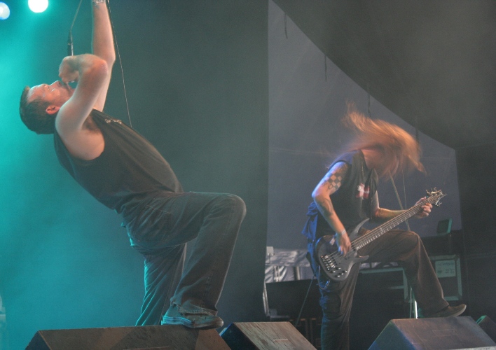 Erster Höhepunkt des Tages dann bei NAGLFAR: Wirklich ein klasse Set, das die Schweden da abliefern. Und schön böse gucken können sie auch. Mit UNLEASHED geht es weiter: Sie prügeln sich durch die verschiedenen Schaffensperioden, von ‚To Asgaard we fly‘, über ‚The Longships are coming‘ und ‚Wir kapitulieren niemals‘ bis hin zu ‚Fimbulwinter‘ vom neuen Album. Letzteres wirkt in Anbetracht der Hitze etwas fehl am Platz – das stört aber niemanden. Perfekt zum Wetter passen dann SEPULTURA: Die Brasilianer machen mit dem Eröffnungsdoppel ‚Beneath the Remains‘ und ‚Refuse/Resist‘ gleich alles platt, und das Publikum rastet völlig aus. Selbst die neuen Songs kommen gut an – insgesamt halten sich SEPULTURA aber vor allem an die Klassiker.
