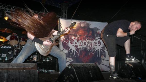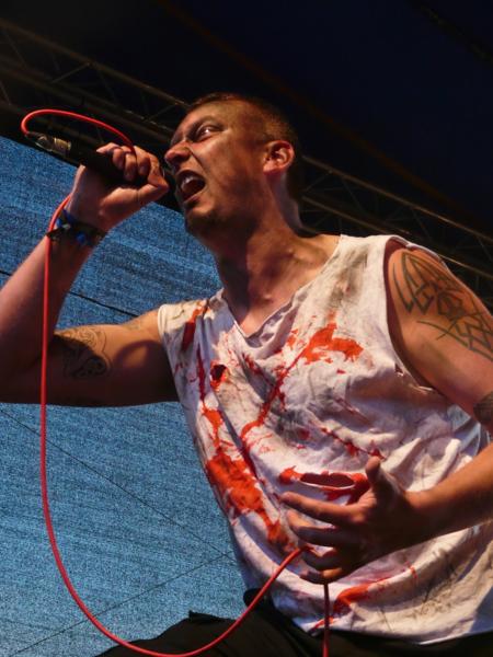 Aborted krachten. Und das leider buchstäblich. Von Anfang an war eine der Gitarren total übersteuert, und das ärgerlicher Weise das gesamte Konzert lang. Großartig stören tat das zum Glück irgendwann nicht mehr, da die Brutal Death-Fraktion um Sven de Caluwé rücksichtslos und in gewohnt chirurgischer Präzision gegen alle Soundprobleme anmetzelte. Mit dem Titel "Ophiolatry" und einem ähnlich dünnen Publikums wie zuvor bei Sonic Syndicate trat die Band ein Konzert an, das den Tag mit einem scheppernden Schlachtfest beenden sollte: Gerade Sven, der in gewohnter Manie(r) wie ein Affe auf Koks über die Bühne sprang, heizte die wenigen Anwesenden zu einem üblen Moshpit vor der Bühne an und schaffte es sogar, eine Wall of Death zu organisieren - wenn auch nur eine kleine (ca. 20 m lang). Auch das mitgebrachte Waffenarsenal konnte sich sehen lassen: Neben vielen Titeln vom neusten Album "Strychnine.213" (beispielsweise "Enterrement of an Idol", das die Band einmal wieder doppelt (!) so schnell spielte, wie auf CD), gab's auch Blutjuwelen vergangener Alben zu hören, etwa "Hecatomb" oder "The Chondrin Enigma". Die wenigen, die sich hatten aufraffen können, zettelten jedenfalls nochmal ein gehöriges Mattendreschen an, bevor sie sich nach getaner Arbeit auf den Campingplatz zurückzogen - sei's zum Schlafen oder für weitere Feierei.