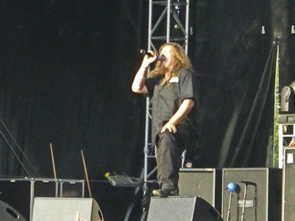Auf Sodom habe ich mich gefreut wie ein kleines Kind auf seine tägliche Dosis Ritalin. Dann legten sie endlich los und das gleich mit Krachern wie "Napalm in the Morning" und "Outbreak of Evil", bei denen gleich die ersten Surfer zu sehen waren. Erhobene Fäuste und Sodomrufe aus der Meute bis in die letzte Reihe ließen mich die Begeisterung der Fans spüren. Bei "Wachturm" gab es ein gemeinsames Singen vom Allerfeinsten und während "The Saw is the Law" flogen die Mähnen, dass es eine Freude war zuzusehen. "Agent Orange" brachte mich doch zum Schmunzeln, da die Menge im Eifer des Gefechts jedesmal ihren Einsatz verpasste und Onkel Tom nur noch den Kopf schüttelte. Mit dem folgenden Statement gaben sich die alten Herren des Festivals sehr bodenständig - "Wir sind ganz normale Metalfans" - und wollten nach dem Auftritt runter kommen und mitfeiern. Als nächstes kam "City of God" von ihrem etwas aktuelleren Album "Sodom", bei welchem leider jede Melodie vom Bass gefressen wurde, was die Bangenden aber nicht störte. Auch die folgenden Titel "Blasphemer", "Remember the Fallen" und "Bombenhagel" wurden von der Basedrum zerknüppelt... schade, es fing so gut an. Am Ende gab es noch ein einfaches "Danke" als Verabschiedung und das war's dann.