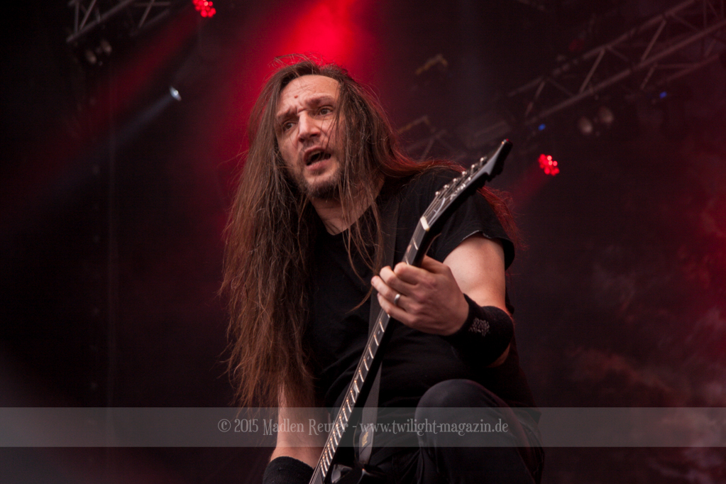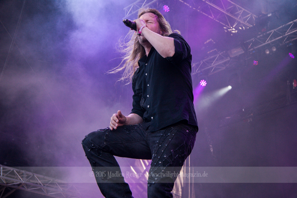 Mein persönlicher Höhepunkt des Tages waren AMORPHIS. Schon seit Jahren wollte ich die Finnen live sehen, und nun war es endlich soweit. Da es sich hierbei um eine spezielle Show gehandelt hat, welche das Kultalbum „Tales From The Thousand Lakes“ feiert sollte, wurde das Album in seiner Gänze dargeboten. Neben diesen Tracks durften aber auch weitere Klassiker nicht fehlen. Zusätzlich wurde auch eine faszinierende Feuershow abgefeuert. Der Sound war extrem fett, und vor allem Sänger Tomi stellte eine unglaubliche Bühnenpräsenz dar. Wie eine solch derbe Stimme aus diesem Mann kommen kann, ist mir bis heute ein Rätsel – Dafür umso faszinierender. Das Gesamtpaket hat einfach gepasst und hat mir eins versichert: Dies war definitiv nicht meine letze AMORPHIS Show!