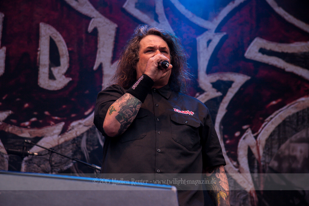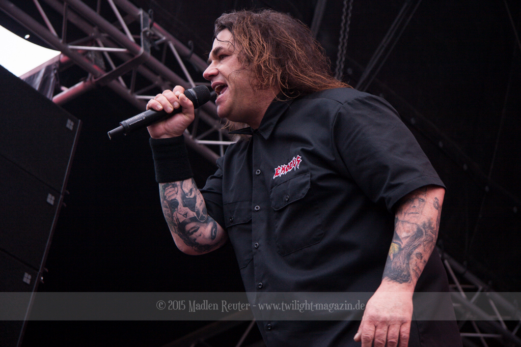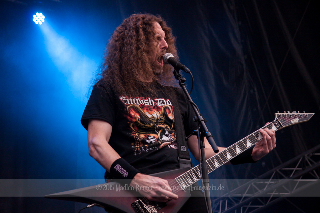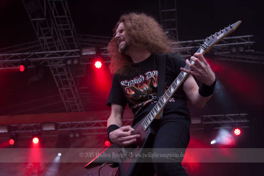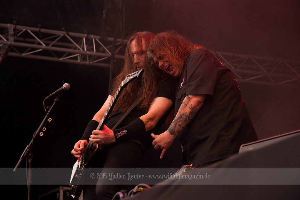 Dann war es auch schon Zeit für das erste Highlight des Tages – EXODUS. Ich muss gestehen, ich konnte sehr lange nichts mit dieser Band anfangen. Seit einem vorangegangenen Konzertbesuch, hat sich meine Meinung allerdings stark geändert. Ein gewaltiges Thrash Metal Feuerwerk, bestehend aus einer angenehmen Mischung von Klassikern und neuen Tracks, wurde für das Publikum abgefeuert. Dabei blieb kaum jemand ruhig stehen und der Zuschauerraum verwandelte sich bald in einen wahren Hexenkessel. Der extrem fette Sound unterstrich die Größe dieses Auftritts noch. Aber auch lobend sei der Einsatz von Nebel und Licht erwähnt – Da wurde nicht nur dem Ohr eine Freude geboten.