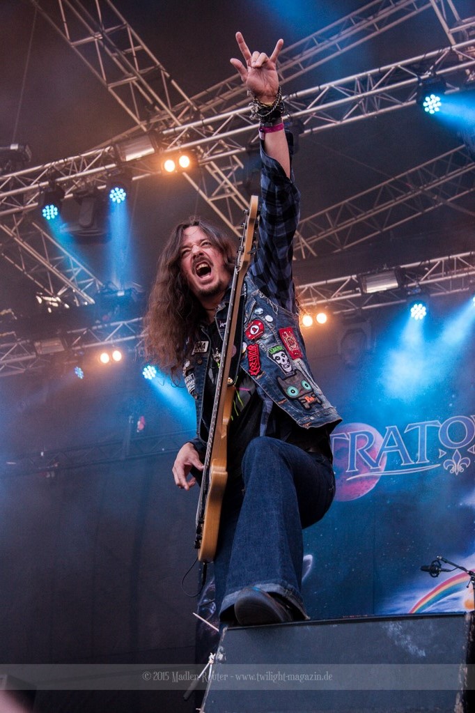 Im Anschluss durften die Jungs von STRATOVARIUS scheinen. Mit einem derben Tempo legen die Herrschaften dann auch direkt los, da sie alles aus ihrer Spielzeit holen wollten. Der Sound wurde sehr schön gemischt, auch wenn Keyboarder und Sänger etwas lauter hätten sein dürfen. Es wird fleißig über die Bühne gewirbelt und mit den Fans interagiert, welche lauthals mitsingen. Von allen Bands, des gesamten Wochenendes, hat mir ihre Lichtshow am beste gefallen. Alles in allem fand ich den Auftritt sehr sehr gut. Darf man sich ruhig öfter ansehen – Vor allem wenn man es etwas schneller mag.