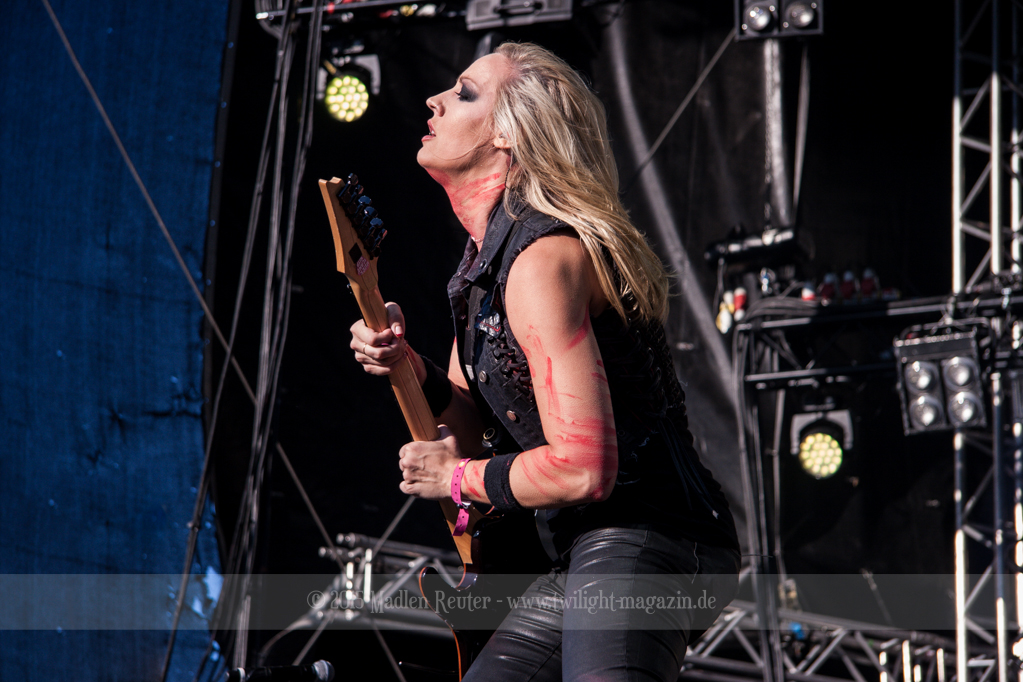 Über die nächste Band musste ich mich dann aber doch wundern. THE BLUES PILLS? Auf einem Metalfestival? Da ich keinerlei Erwartungen an diese Band hatte, wurde ich dennoch positiv überrascht. Zwar war die Musik sehr bluesgeprägt - wie der Name der Band schon verraten könnte - und die Musiker wagten es kaum, ihre Blicke von den Instrumenten zu heben, aber die Sängerin machte dies ein wenig wett. Voller Energie und guter Laune schüttelte sie ihr Tamburin umher, hüpfte über die Bühne und überraschte mit ihrer kräftigen Stimme. Der Auftritt war ziemlich gut, wenn man einmal davon absieht, dass diese Band eigentlich nicht auf dieses Festival passt.