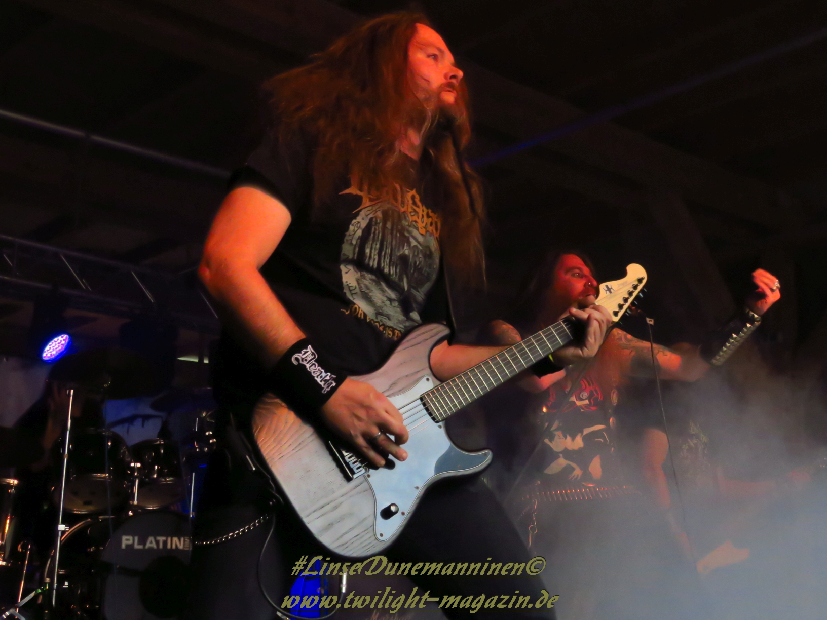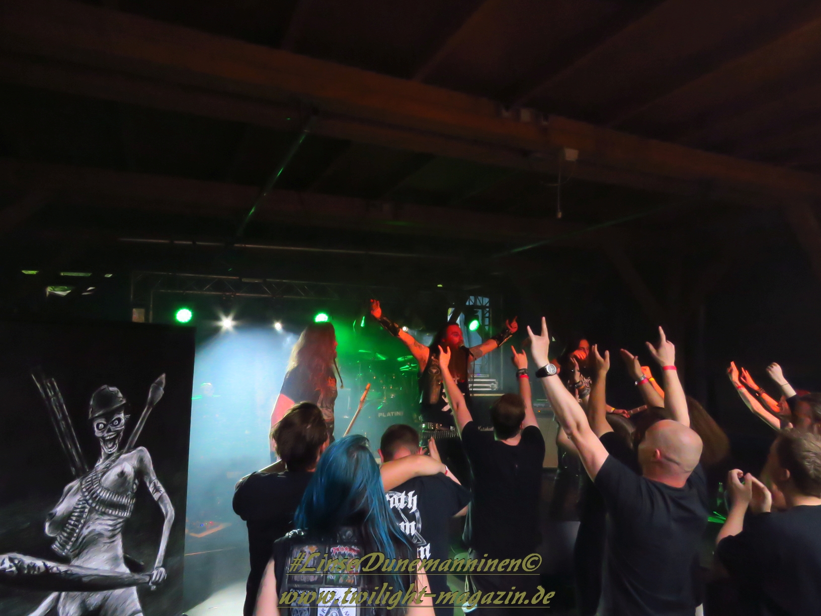Die musikalische Mischung aus Black Metal, Punk und Doom von Seuche und seiner Band Fäulnis ist schon sehr speziell und zum Polarisieren verdammt. Insbesondere vom hatte ich die Hamburger Formation auf dem Party.San 2015 persönlich in fürchterlicher Erinnerung. Dieser Eindruck relativiert sich heute Abend glücklicherweise etwas, wobei ich mit der Musik und der Art, wie sie Hauptprotagonist Seuche vorträgt jedoch nach wie vor nicht wirklich warm werde. Als Performance-Kunst kann ich dem ganzen jedoch zumindest einmalig etwas abgewinnen. Darüber hinaus sieht das aber ein großer Teil des Publikums anders und feiert Fäulnis mächtig ab.