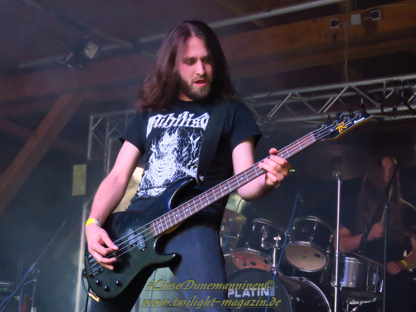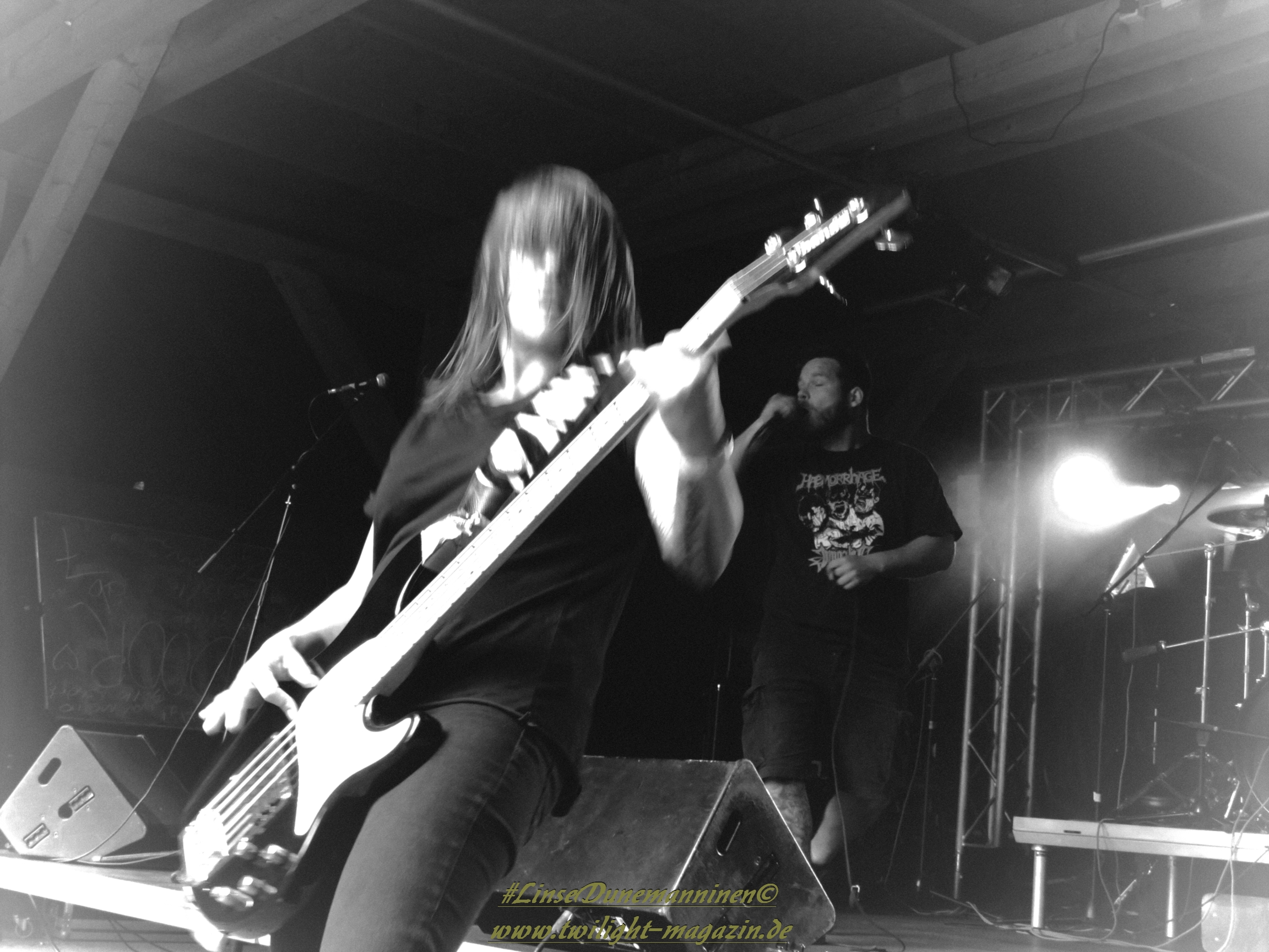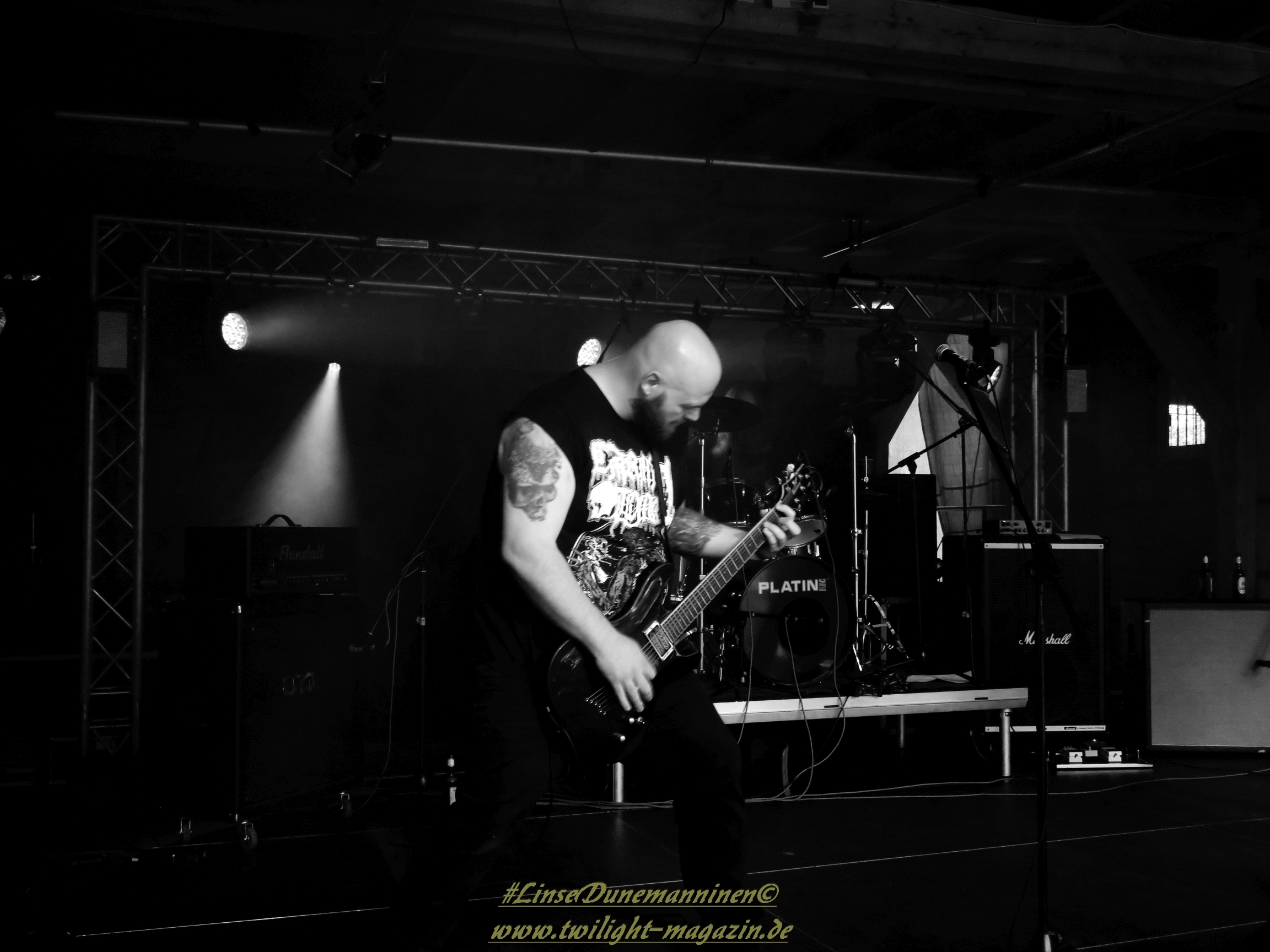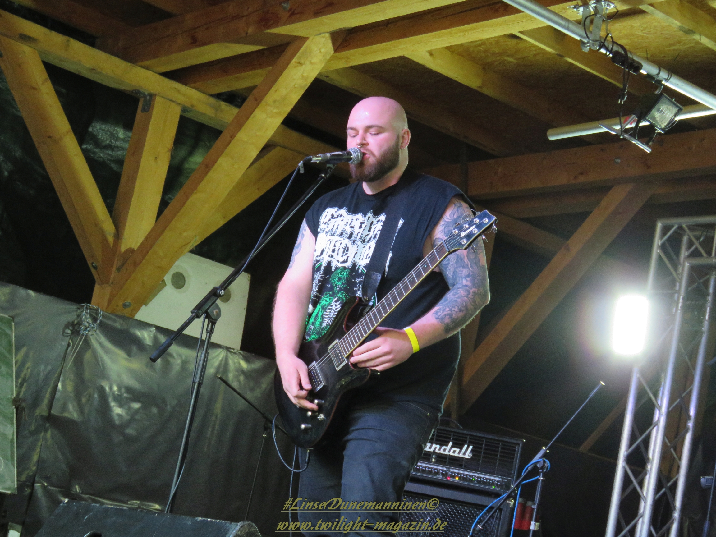 Für die Lokalmatadoren ATOMWINTER folgt anschließend ein Heimspiel, dass im Fußball einem zu verwandelnden Elfer ohne Torwart gleich kommen würde. Und das Quartett nimmt es ebenso sportlich und verwandelt das Geschenk wahrlich souverän. Allen voran Sänger Holzschneider, für den der Begriff Rampensau erfunden worden zu sein scheint, ein Typus Mensch, dem man sowohl abends im Dunkeln allein auf der Straße nicht wirklich begegnen möchte, auf den man jedoch in der ungemütlichsten Situation zählen kann. Darüber hinaus ist er mit einem außergewöhnlichen wie variablem Organ gesegnet, mit dem er großartig umzugehen weiß und mit dem er dem vermeintlich simplen aber äußerst effektiven Todesstahl ein äußerst saures Sahnehäubchen verpasst. Die Meute vor der Bühne huldigt dem Quartett und sorgt für einen amtlichen Moshpit. Keine Ahnung, wieso ich diese Band bisher nicht wirklich auf dem Radar hatte. Es gibt nicht wenige Bands, die aus relativ bescheidenen Mitteln soviel heraus holen. Wenn man einen "Asphyx-Gedächtnispreis" ausloben würde, dann wären Atomwinter jedenfalls ein ganz heißer Anwärter darauf. Die anstehenden Auftritte auf dem Protzen und dem Party.San Open Air sind, wenn nicht sogar überfällig, dann mehr als verdient.