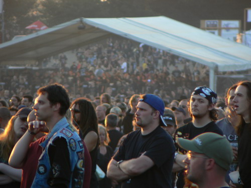 Freitag 18:45-19:45 IN EXTREMO mal wieder. Konnte ich mich auf vorangegangen W:O:A:s immer rechtzeitig verdrücken bevor der erste Dudelsack zu tröten anfing, ließ ich mich in diesem Jahr in einem Anfall hormonell bedingter Gockelitis Akkutis von meiner netten Begleiterin vor die Bühne zerren. Die Thüringer müssen wohl so was wie der heimliche Headliner der Damenwelt gewesen sein, zumindest war der Anteil weiblicher Fans deutlich höher als bei Motörhead. Musikalisch gabs dann wenig zu meckern, alle Hits (zumindest die die ich kenne) kamen zum Zuge und auch optisch wurde einiges an Pyros und Bühnendeko geboten. Eiko