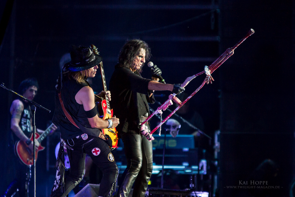 Der Schocker Alice Cooper gab sich die Ehre und da durften wir natürlich nicht fehlen. Geschminkt und Kostümiert betraten die US Rocker die Bühne. Nach einem langen Intro folgte das Judy Collins Cover "Hello Hooray". Die Menge war sofort mit dabei und feierte den Helden ab. Sie spielten eine beachtlich lange Playlist runter und es war zwischendurch immer mal wieder der ein oder andere Witz mit dabei. Songs wie "Hey Stoopid", "Poison" oder "School´s Out" durften natürlich nicht fehlen und wurde perfekt umgesetzt. Teilweise war mir der Sound nicht wuchtig genug, aber dennoch war es ein gelungenen Auftritt u.a. mit ein paar Covern von Jimi Hendrix´s "Foxy Lady", The Who´s "My Generation", The Door´s "Break On Through" und den Beatles "Revolution".