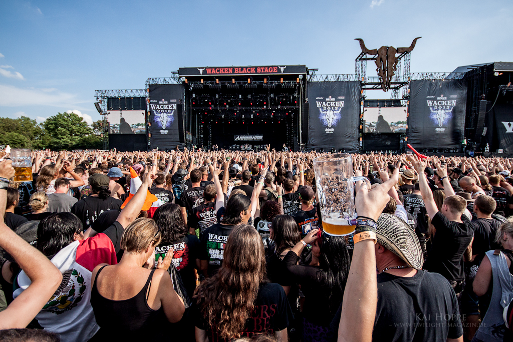 e dem Publikum ein fettes Programm geboten. Viel Feuer, der bekannte Klamauk von Flake und Till bei „Bück dich“, auch das Intro mit „ich tu dir weh“ wurde mit Feuerwerk auf und hinter der Bühne (in den Himmel hinein) abgefeuert. Eigentlich nichts wesentlich Neues, halt genau das, was die Fans von Rammstein erwarten. Blieb nur noch eine Sache ungeklärt: Die große Diskussion um Rammstein und Heino… Das war die große Frage des Tages: kommt Heino auf die Bühne oder nicht? Bei den Zugaben war es dann soweit. Der sonst eher wortkarge Till Lindemann kündigte Heino ausgiebig zu dem von ihm selbst gecoverten Song „Sonne“ an. Mit langem roten Ledermantel und sichtlichem Respekt vor den Menschenmassen kam er auf die Bühne. Es wird auch daher nicht sofort in den Song gefunden haben. Wie schon bei seiner Coverversion, war Heinos Gesangsleistung allerdings eher dürftig. Ein netter Gimmick, den man aber eigentlich nicht braucht. Trotzdem Respekt gegenüber den Jungs von Rammstein, die Heinos Coverversionen bekanntlich nicht von Anfang an witzig fanden, ihn nach Wacken einzuladen. Fazit: Unterhaltung und Show in gewohnter Manier.
