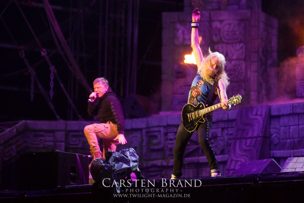 IRON MAIDEN auf dem Wacken und alle flippen aus. Das Gedränge vor der Bühne ist enorm groß und ich kann es ehrlich gesagt nicht im geringsten verstehen, wie despektierlich das Publikum werden kann. Beim Versuch, mit Equipment und offensichtlich arbeitend durch die Menge nach vorne zu gelangen wurd ich wüst beschimpft, nicht durchgelassen oder zumindest schief angeguckt. Und wenn einem das schon an den Seiten passiert, also gar nicht mal im unmittelbaren Vorbühnenbereich, dann gibt einem das schon zu denken. Der Auftritt selber ist sicherlich professionell, mag für mich aber eigentlich nicht auf ein Festival passen. Zudem wurde die Bühne für eine einzige Band den ganzen Tag gesperrt. Ob das dann sinnvoll ist, sei dahingestellt. Nach dem typischen „Doctor Doctor“ Intro geht es quer durch die Bandgeschichte. „Fear of the Dark“ oder „The Trooper“ dürfen nicht fehlen. Aufgrund der übervollen Publikumsmenge macht der Auftritt aber nicht wirklich Spaß. Highlight des Auftritts ist das Lied „Wasted Years“ was ich mir aber eher von sehr weit hinten ansehe, mit einem guten Getränk in der Hand.