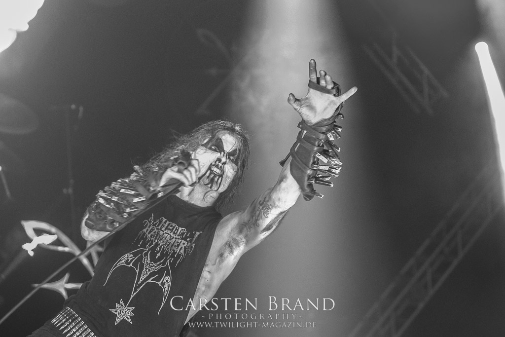 Der Schwedenhammer ergänzt hervorragend, was die skandinavischen Kollegen von TSJUDER angefangen haben. Mortuus präsentiert sich in gut gelaunter Form. Seine markerschütternden Growls kommen bereits vom ersten Track weg sehr gut beim Publikum an. Das Wolfsrudel macht keine Gefangenen und marschiert fleißig als Panzer DIvision Marduk über den Platz.