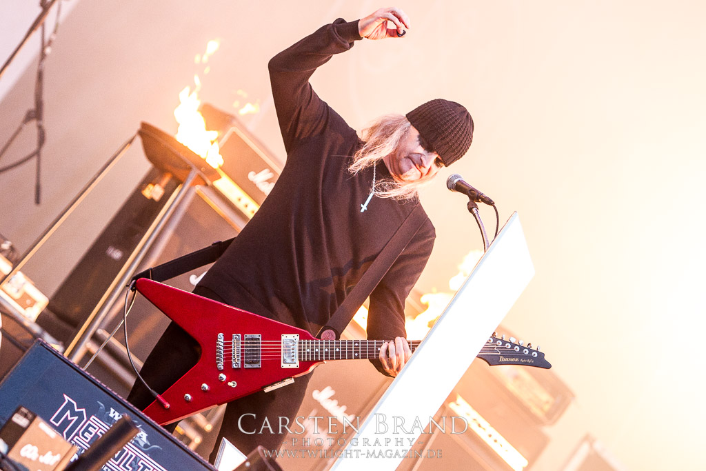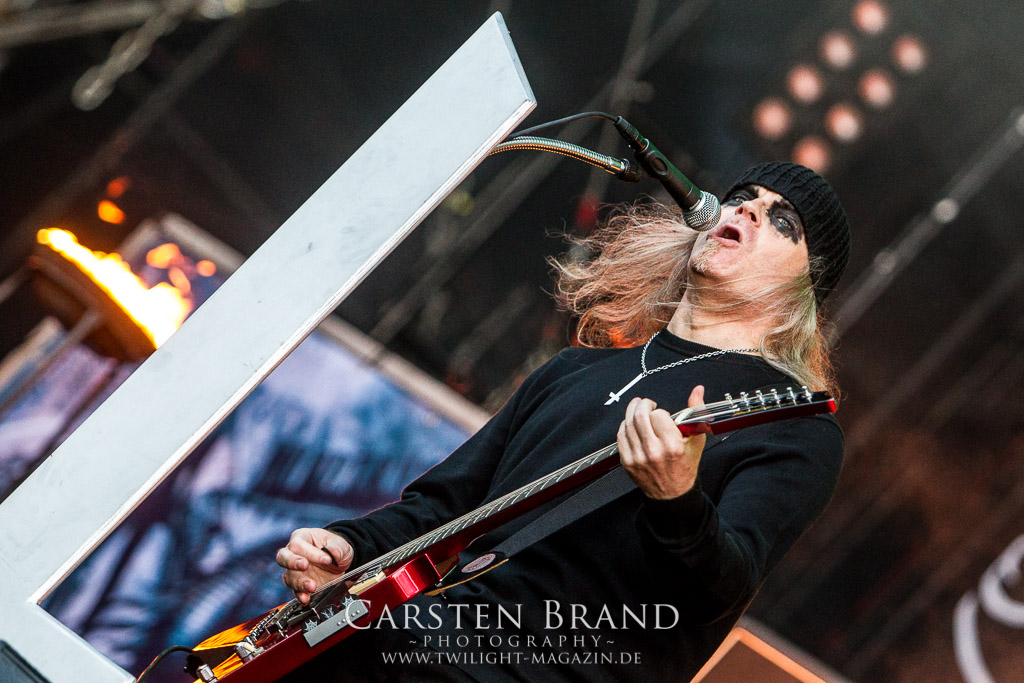 Eigentlich ist die Party Satage ja sehr weit entfernt von der Headbanger Stage. Dennoch entern GLORYHAMMER mit ihrem Fantast Metal zum frühen Abend das Zelt. Auf der Suche nach Einhörnern, Drachentötern oder der Prinzessin, irgendwo dazwischen bewegen sich die Herren des Power Metal. „ I wanna set the universe on fire“. Das Universum muss vor bösen Schurken verteidigt werden. Die Musik ist recht simpel zu beschreiben: Eingängiger Power Metal mit sehr viel Ohrwurm Charakter, einfachen Refrains und einer Menge Ironie oder einfach: Spaß an der Sache. Man könnte es als billigen Klamauk betiteln. Wer allerdings sich mal überwunden hat, die Show der Helden anzusehen, wird schnell überzeugt. Der Slot macht einfach wahnsinnig Spaß, das Bein wippt sehr schnell mit dem Takt mit. Und spätestens ab dem zweiten Track fühlt man sich ebenfalls als Ritter und Retter der Galaxie. Es fehlt nicht an Klischees und diese werden auch fleißig bedient und gepflegt. „Legend of the Astral Hammer“ ist dafür ein gutes Beispiel. Grandioses Kino auf ganzem hohen Spaß Level.