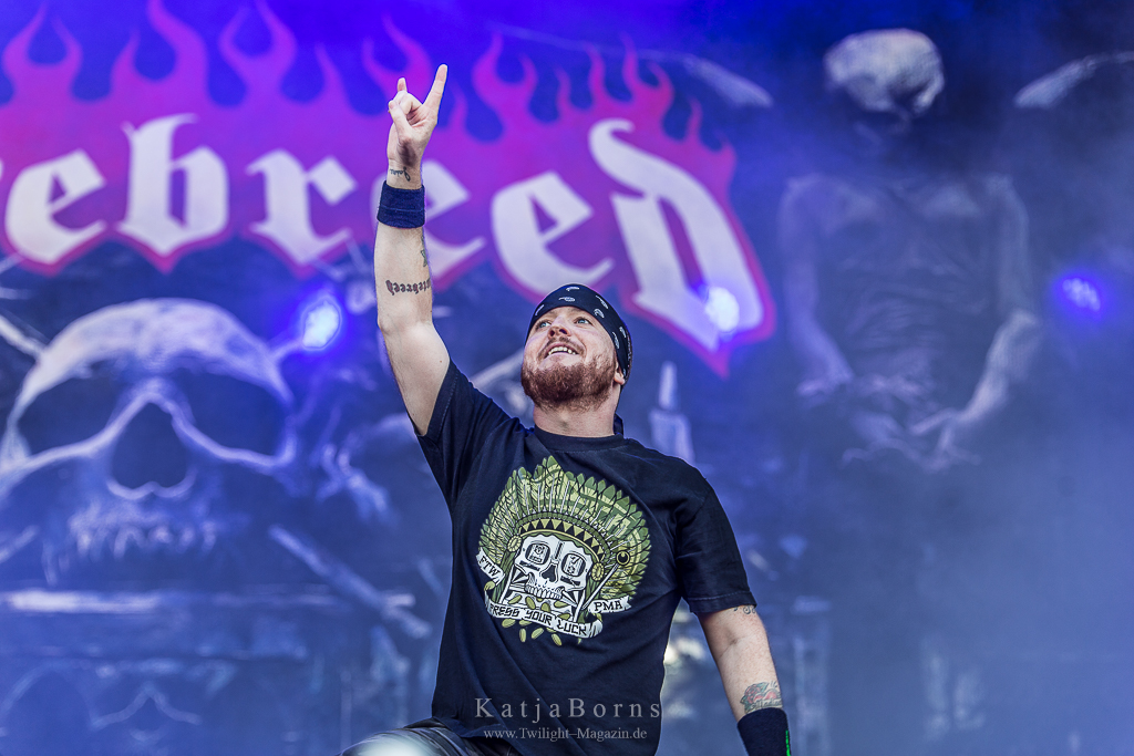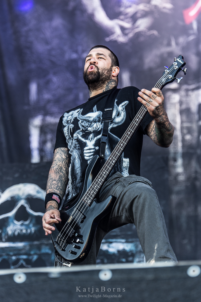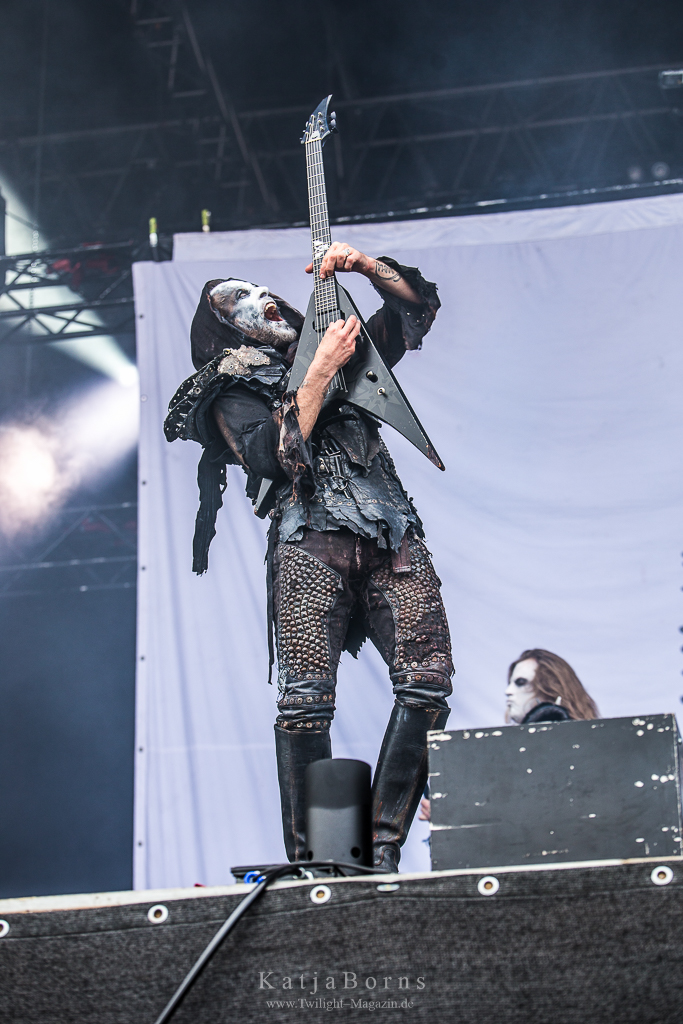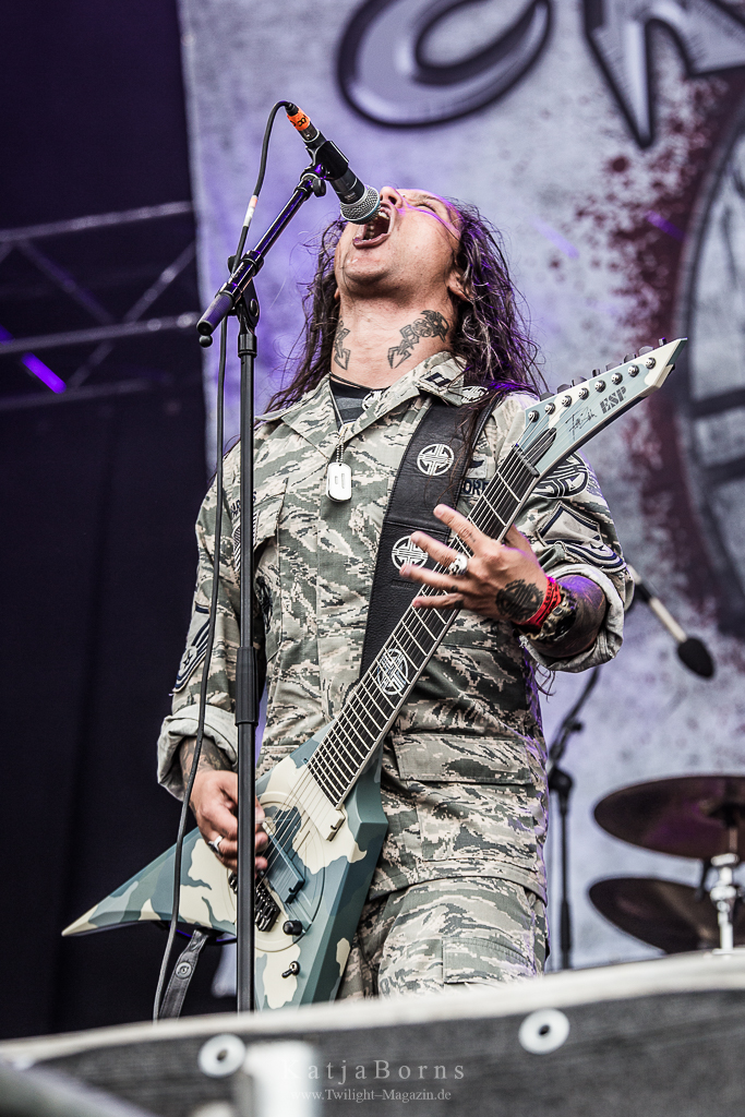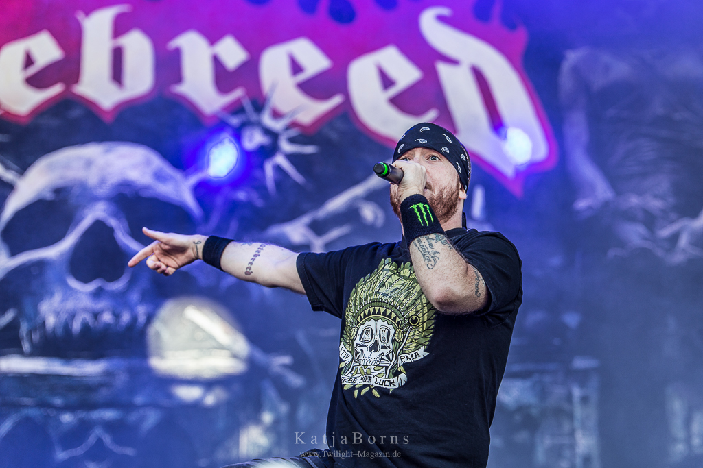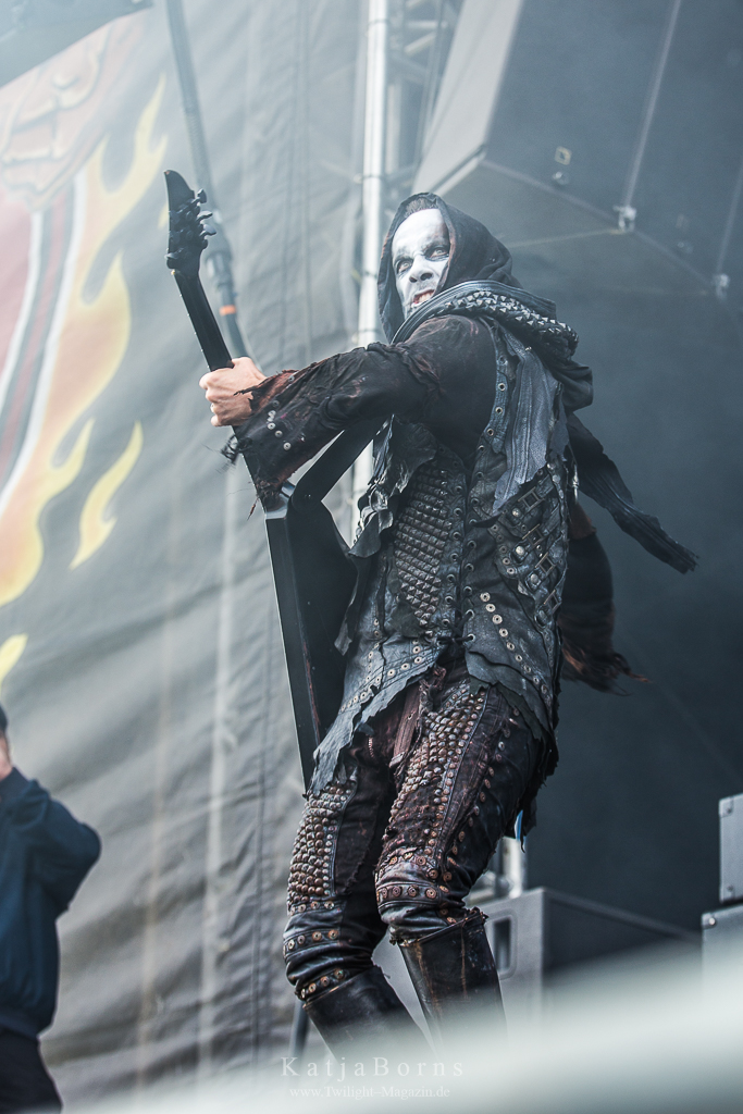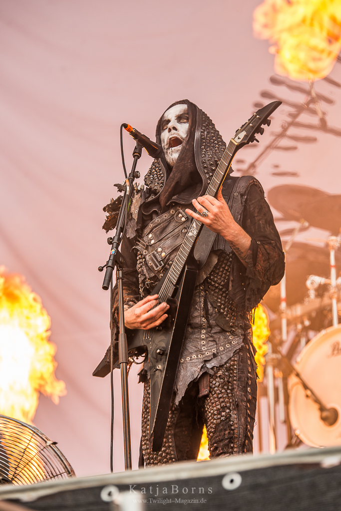 Der Samstag begann zunächst mit einer Sturmwarnung und nach den bisherigen Desastern bei Rock am Ring sowie beim Hurricane und beim Southside Festival gab es schon einige böse Vorahnungen. Trotz der vielen Agnostiker scheint der Wettergott aber Heavy Metal eben doch zu lieben und so blieb es bei einigen Schauern und einer recht steifen Brise am Nachmittag. Kein einziger Auftritt musste abgesagt werden. Zum späten Nachmittag gab es dann bestes Festivalwetter bei etwas über 20°C und so konnte Zoltan mit seiner Band EKTOMORF in Bestform über die Bühne hüpfen während die Menge trockenen Fußes im Pit kreiselte. Anschließend feierte BEHEMOTH mit uns eine satanische Messe und spätestens jetzt hätte der massive Einsatz der Flammenwerfer wohl jede aufkommende Regenwolke sofort verdunsten lassen. Noch etwas benebelt vom Weihrauch blieb keine Zeit sich Sorgen um das eigene Seelenheil zu machen, schon brüllte Jamey Jasta uns zurück ins das hier und jetzt. HATEBREED trafen wie das Geschoss aus einer Pumpgun den Nerv des Publikums.