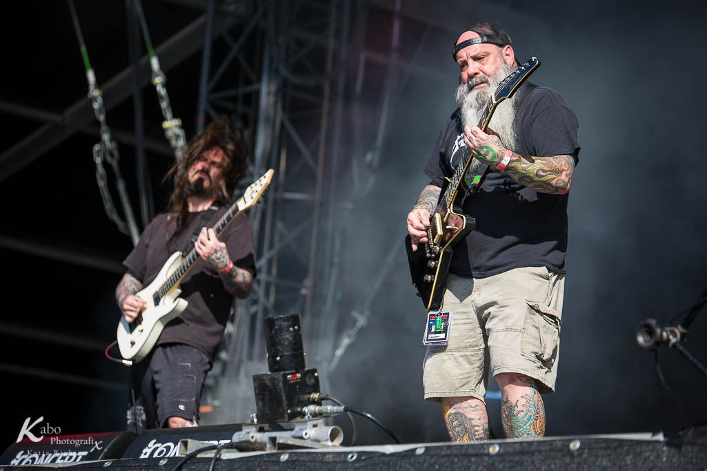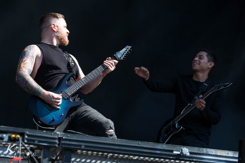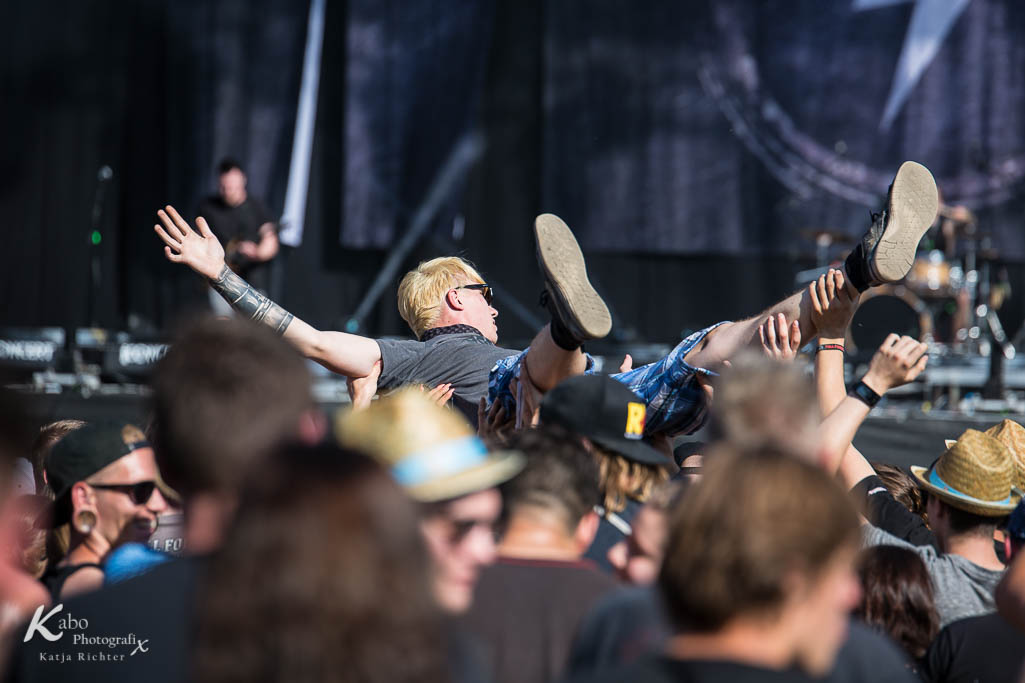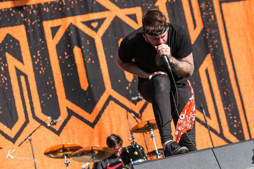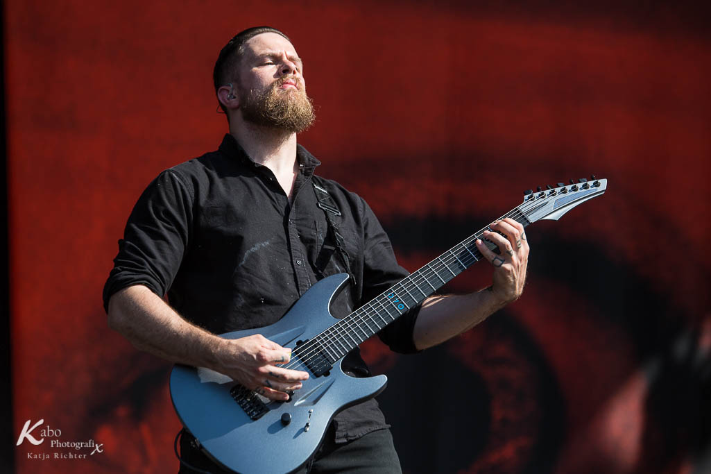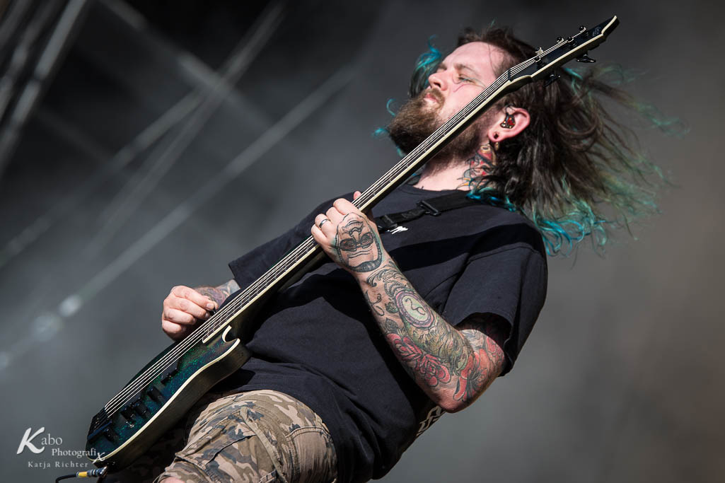 Samstag – Geweckt von der großen hellen Scheibe, die viel zu früh und viel zu stark am Himmel stand, musste der Kreislauf nun erstmal langsam hochfahren und sich an das Wochenende gewöhnen – man sind wir alt geworden! Für CROWBAR haben wir uns dann doch irgendwann zum Festivalgelände geschleppt und mit Kirk in der Hitze gelitten. Die Hauptbühne ist für die Truppe aus Louisiana definitiv angemessen, nur leider fand sich das Publikum hier nur spärlich zusammen. Dennoch gelang es den Amis spielend leicht, die anwesenden, vor Hitze brütenden Gehirne, in ein sludgiges Doom-Parallel-Universum zu kicken. Zu den schweren Riffs und Rhythmen will schließlich mitgebangt werden und Songs wie “All I had I gave” oder “Planets Collide” laden auch wunderbar zum Mitgröhlen ein. Weiter ging es mit INFECTED RAIN auf der Seebühne und JINJER im Hardbowl – beide stark und irgendwie passend auf ihren Bühnen. Jinjer Fronfrau Tatiana Shmaylyuk nahm in ihrem schrill goldenen Outfit und ihrer unfassbaren Energie sogleich die Bühne in Besitz und sollte sie für den Rest des Auftritts auch nicht wieder hergeben. Passender hätte “Dying in heat is a rehearsel for being in hell” an diesem Tag nicht sein können!