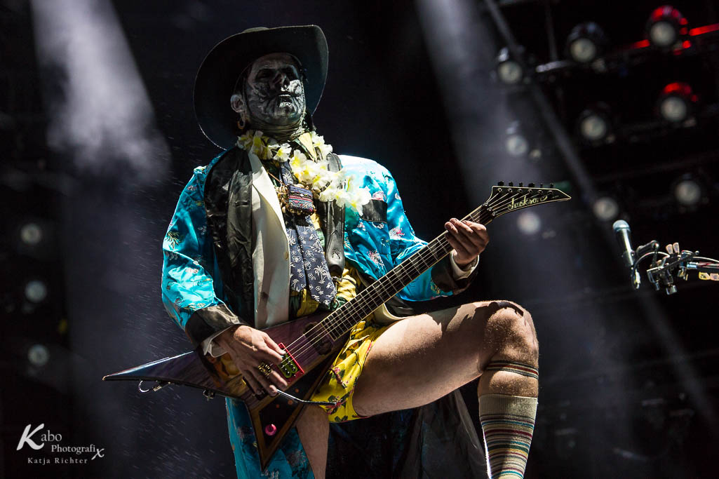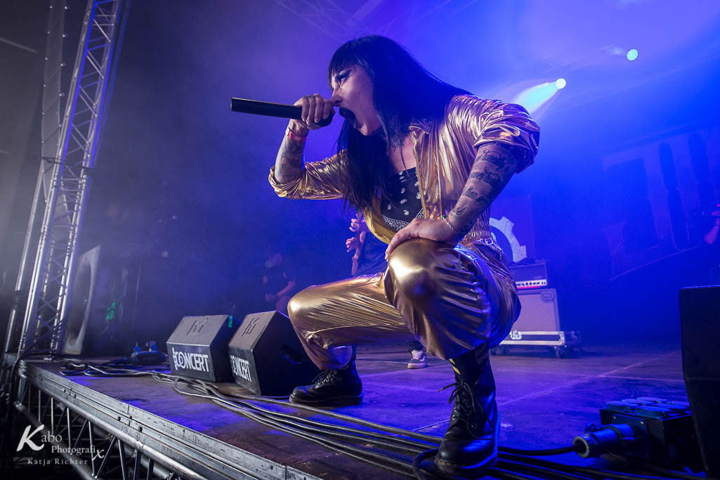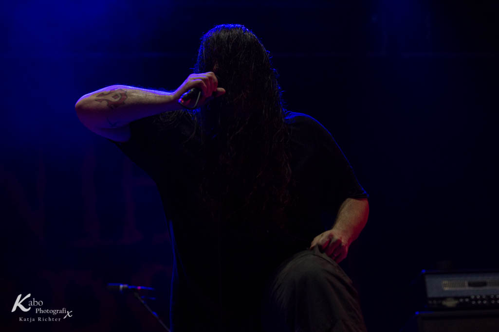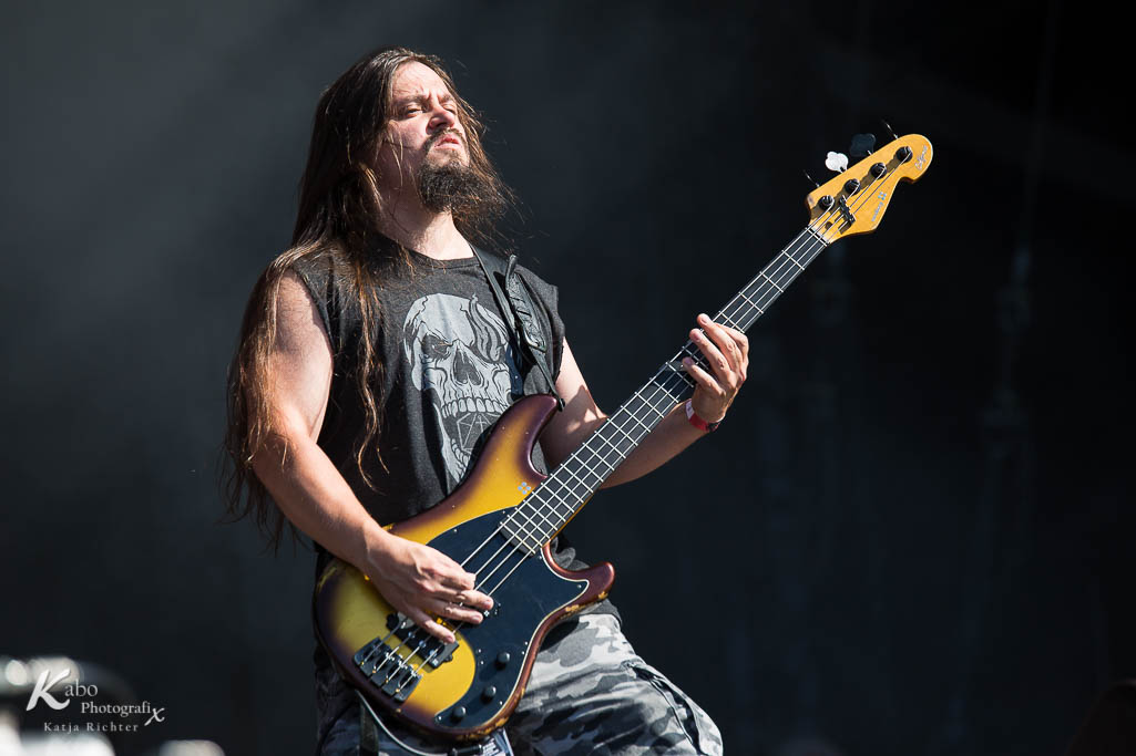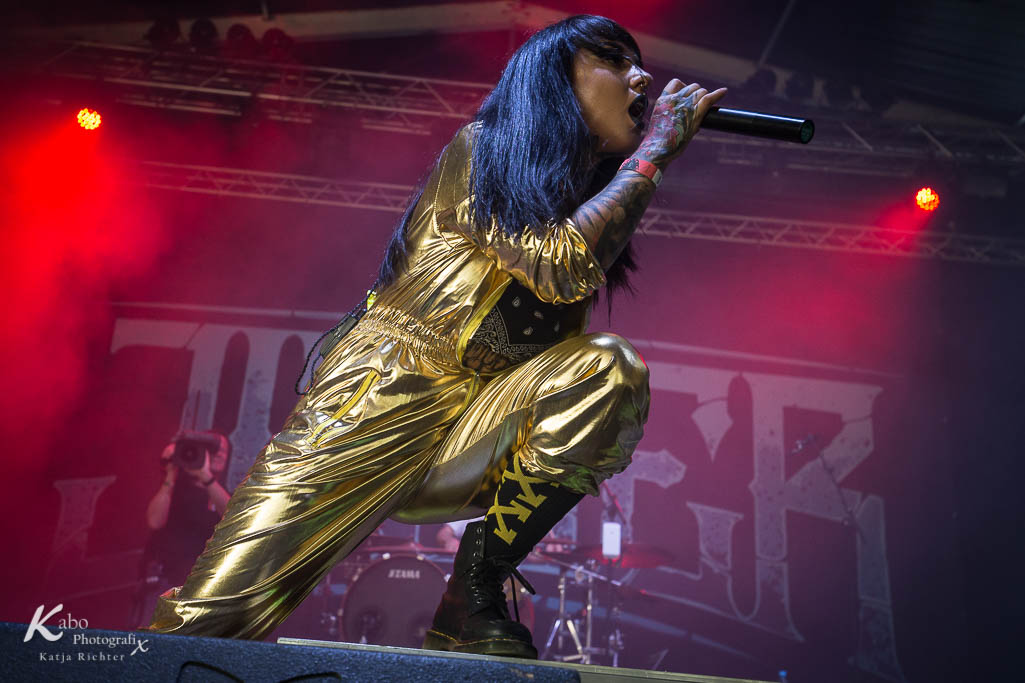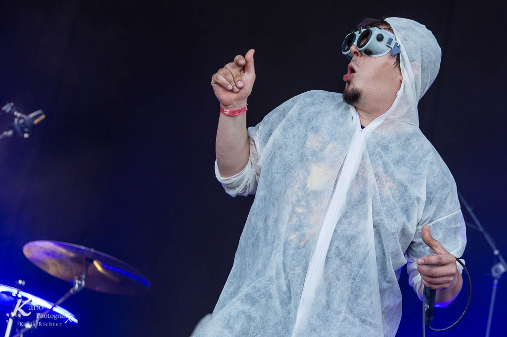 Samstag – Geweckt von der großen hellen Scheibe, die viel zu früh und viel zu stark am Himmel stand, musste der Kreislauf nun erstmal langsam hochfahren und sich an das Wochenende gewöhnen – man sind wir alt geworden! Für CROWBAR haben wir uns dann doch irgendwann zum Festivalgelände geschleppt und mit Kirk in der Hitze gelitten. Die Hauptbühne ist für die Truppe aus Louisiana definitiv angemessen, nur leider fand sich das Publikum hier nur spärlich zusammen. Dennoch gelang es den Amis spielend leicht, die anwesenden, vor Hitze brütenden Gehirne, in ein sludgiges Doom-Parallel-Universum zu kicken. Zu den schweren Riffs und Rhythmen will schließlich mitgebangt werden und Songs wie “All I had I gave” oder “Planets Collide” laden auch wunderbar zum Mitgröhlen ein. Weiter ging es mit INFECTED RAIN auf der Seebühne und JINJER im Hardbowl – beide stark und irgendwie passend auf ihren Bühnen. Jinjer Fronfrau Tatiana Shmaylyuk nahm in ihrem schrill goldenen Outfit und ihrer unfassbaren Energie sogleich die Bühne in Besitz und sollte sie für den Rest des Auftritts auch nicht wieder hergeben. Passender hätte “Dying in heat is a rehearsel for being in hell” an diesem Tag nicht sein können!