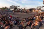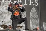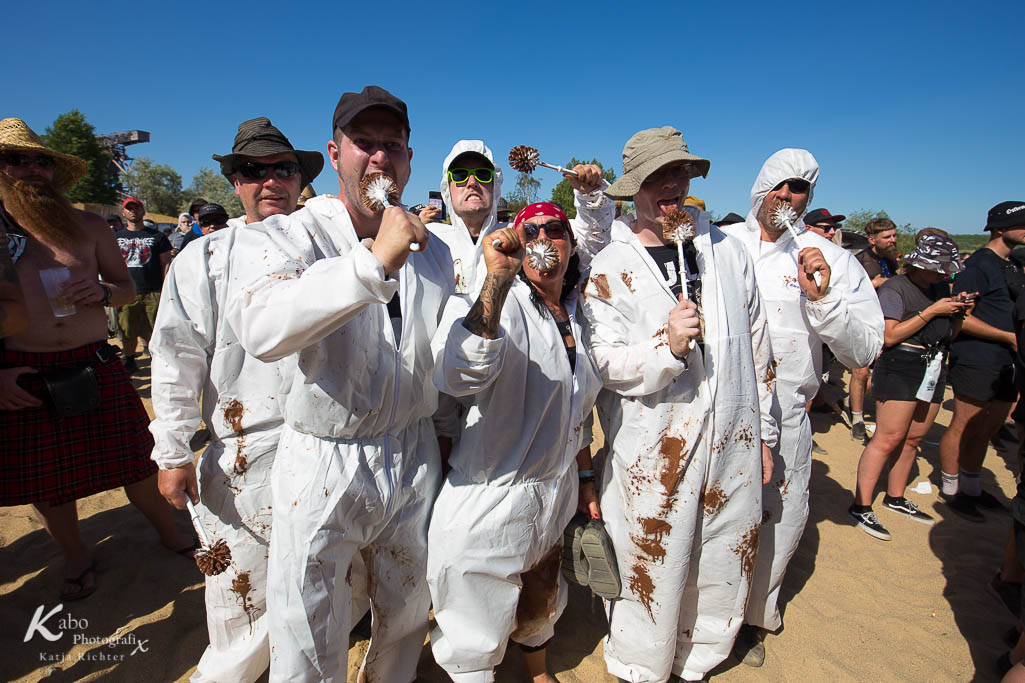 Dennoch peitschte Jinjer ihr fanreiches Publikum gnadenlos weiter nach vorn und mit damönischer Präsenz geradewegs ins Metal-Fegefeuer. Bei AT THE GATES und KNORKATOR auf der Mad Max Stage war es dann wieder vorbei mit Schonhaltung und es durften alle Muskeln strapaziert werden. Mit ihrem melodischen Death Metal, der keine Ermüdungserscheinungen und keine moderne Sänfte an den Tag legt, haben sich At the Gates um ihren Legendenstatus verdient gemacht. Tompa Lindberg, mit seinem mittlerweile zum Markenzeichen gewordenen Look im Cappy, ist in stimmlicher Bestform und führt gekonnt durch das Set, das sich die Waage aus Klassikern und neuem Material hält. Bereits der Bühnenaufbau von KNORKATOR ließ auf einiges hoffen. Grundsätzlich gehören die Auftritte von Knorkator zum Full Force wie die Erdbeerbowle. Wo andere Bands Balsam für den Körper sind, sind Knorkator purer Urlaub für die Synapsen. Als Verstärkung holte man sich aus Österreich zwei vollkommen durchgeknallte Vögel, die unter dem Namen dummeSau.lol für allerlei Schabernack sorgten. Anscheinend boten sie Ersatz für den am Knie verletzten Stumpen, und so wurde von Leitern auf Tapezier-Tische gedivet, mit einem Gummistiefel an einer Wippe dem Gegenüber mit ordentlich Schmackes ins Gemächt getreten oder mit einer Pümpelkanone aufeinander geschossen. Auch vor den eigenen Tourmitgliedern wurde nicht Halt gemacht und so wurde das diesjährig auserwählte Opfer in einen großen Plexiglas-Kasten gesteckt, in dem dann via Fernzündung eine riesige Schwarzwälder-Kirsch-Torte explodierte. Aber das FullForce-Publikum wäre nicht das FullForce-Publikum, wenn es diesen Mann anschließend nicht ehrenvoll beim crowdsurfen wieder sauber geleckt hätte. Neben den eigenen Kindern gehörte diesmal auch Kumpel RUMMELSNUFF zur Bühnenshow, der eine sehr klare und verständliche Version von “Mich verfolgt meine eigene Scheiße” darbrachte. Abwechslung boten SMOKE BLOW mit gewohntem Live-Potential und ihrer schweißtreibenden Hardcore-Punk-Variante im Hardbowl und ALCEST mit ihren stimmungsvollen Instrumentals am Strand – was eine abgefahrene Mischung! Mit ihren dichten Klangwelten lockte der anfangs noch ziemlich leere Sandstreifen immer mehr neue Zuhörer. Auch wenn der Bass leider stark übersteuert war, ließen Alcest das Publikum in der geschaffenen Atmospshäre andächtig im nun kühler werdenden Sand träumen. Abgerundet wurde der Samstag für uns mit TERROR in der Tentstage, die alles zerlegten und die sowieso schon ausgelaugten Leiber nochmal ordentlich durch die Schwitz-Presse jagten. Kein Wunder also, dass ARCH ENEMY mit beeindruckender Bühnenkulisse und ordentlich Feuerwerk mehr entspannte „Zuschau-Unterhaltung“ boten, als Anreiz zur Bewegung.