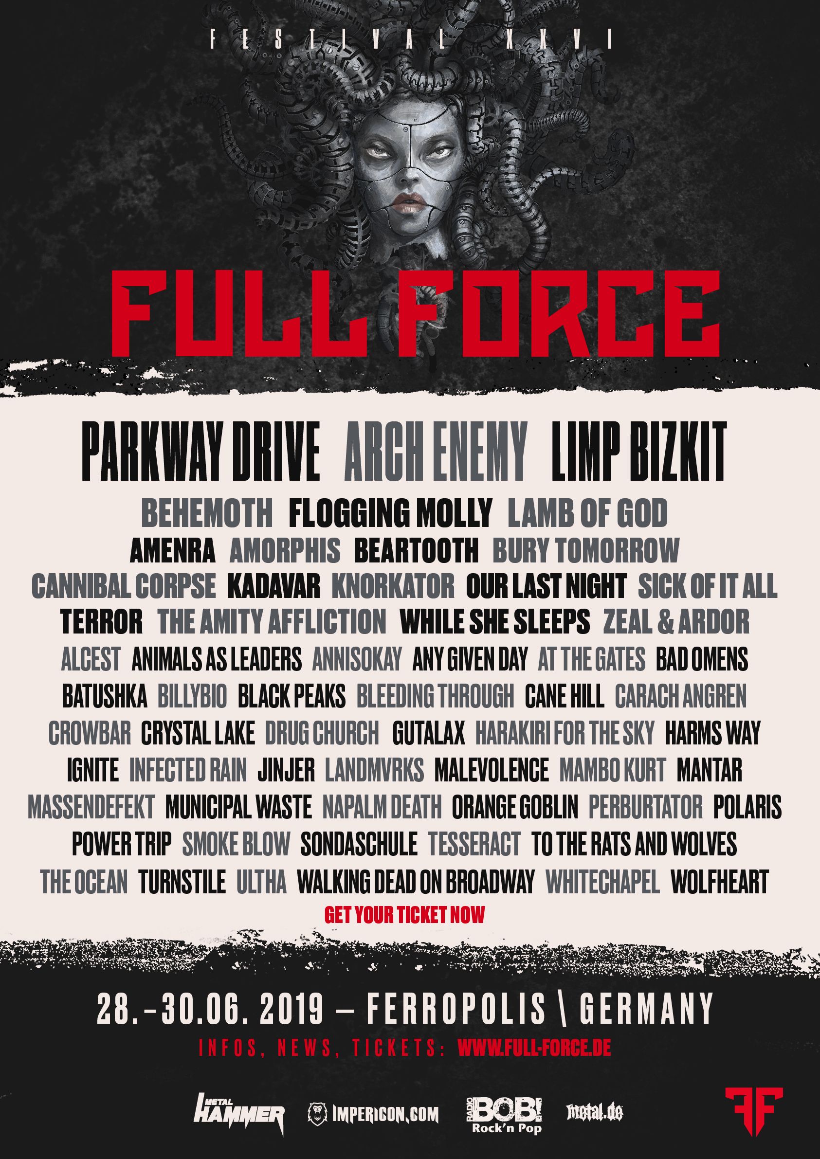 BEHEMOTH und PARKWAY DRIVE die beide eine starke Leistung zeigten und jeden, ob Fan oder nicht Fan, mitzogen. Die Energie von Parkway Drive, die sich durch Feuerwerk und Fackelträger direkt ins Publikum übertrug, prallte ungebremst zurück und die Fans drehten richtig auf. Während Winston McCall aus dem Grinsen nicht mehr raus kam, schüttelte der Mob zum vielschichtigen Mix aus Hard- und Metalcore, den markanten, eingängigen Riffs und dem Funkenregen alles von sich ab, was sich in einem Jahr FullForceAbstinenz angestaut haben mag. Für beide Seiten war das eine absolut gelungene Show und ein grandioser Auftritt. Nachts ging es nochmal zu BATUSHKA, die uns die letzten Energiereserven aus dem Körper zogen und mit ihrer schwarzen Messe irgendwann verdient in den Schlaf entließen.