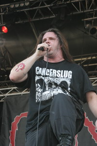 spielten headbangend und growlend ihr Repertoire runter. Wem das schon zu hart war, der konnte sich nur glücklich schätzen, dass man zwischen tiefen Gegrunze und hohem Geschreie nichts von den Horror, Mord und Totschlag handelnden Texten verstand. Ein passabler Auftritt, bei dem mir allerdings ein guter alter Bekannter und Stagediving-Gott mit tätowiertem Bandschriftzug fehlte. Dafür ist angeblich unsere feierfreudiger Begleitung Mr. M. nach dem Auftritt dem Corpse Sänger im V.I.P.-Bereich begegnet, woraufhin sie zusammen Whisky trinken gegangen sind. Ich bin mir bis heute nicht ganz sicher, wen der Herr M. in seiner Phantasie da vor sich gesehen hat, aber vielleicht war es ja wirklich der „Corpsegrinder“. Wer weiß, zumindest soll besagter Trinkkumpane englisch gesprochen haben und sehr freundlich gewesen sein. [Tanja]