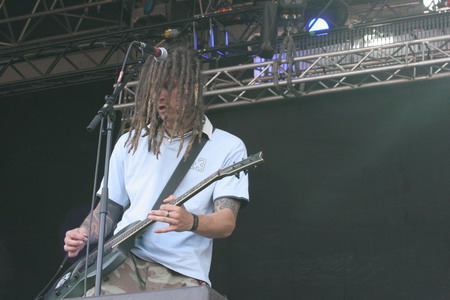 Ich hatte die Ungarn erst Ende vergangen Jahres als Vorband von Volbeat live gesehen, wobei sie mich nicht wirklich überzeugen konnten. Deswegen war ich an diesem Samstagnachmittag auch nicht wirklich scharf auf den Thrash-Hardcore-Mix, aber ich hatte halt Lust auf laute Musik. Also haben wir uns die Band vom Bierzelt aus angesehen und ich bin zum gleichen Entschluss gekommen, wie schon vor einigen Monaten: Kennst du einen Song, kennst du alle. Ich habe diesmal nicht drauf geachtet, ob wieder jedes zweite Wort „Fuck“ war, aber ich vermute mal schon. Ganz am Rande habe ich gehört, dass der Sänger ausgesprochen hübsch sein soll, aber diese Tatsache machte den Gig für mich in diesem Moment nicht besser. Sorry an all die Ektomorf Fans dieser Welt, die mir wahrscheinlich am liebsten an die Gurgel springen würden, Musik wird nunmal subjektiv bewertet und die Ungarn sind eben einfach nicht meine Band. [Tanja]