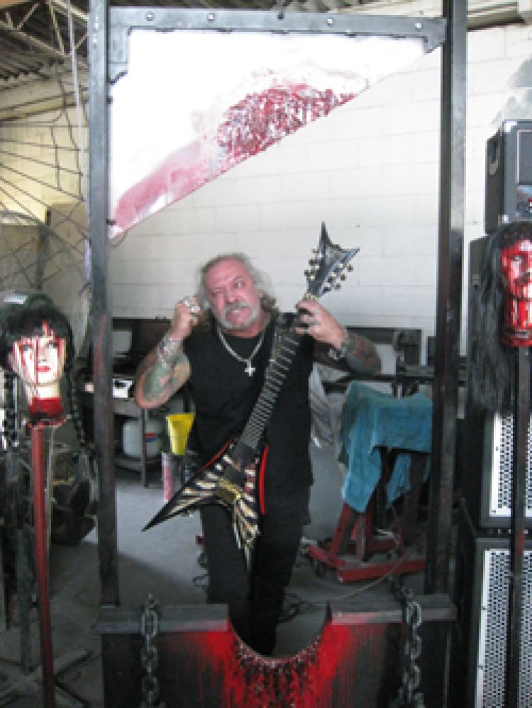 Der entpuppt sich dann als ein extrem netter und gastfreundlicher Mensch. Bei einem Barbecue und Bier schnacken wir im Hobbs’ Headquater und speisen zwischen Bühne, Guillotine und Muscle Cars. Peter ist ein absoluter Enthusiast und immer auch Fan geblieben. Irgendwie kommt mir während des folgenden Interviews immer wieder der Anvil Film in den Sinn. Den kennt Peter nicht, muss er auch nicht – erlebt er den Inhalt doch höchstpersönlich.