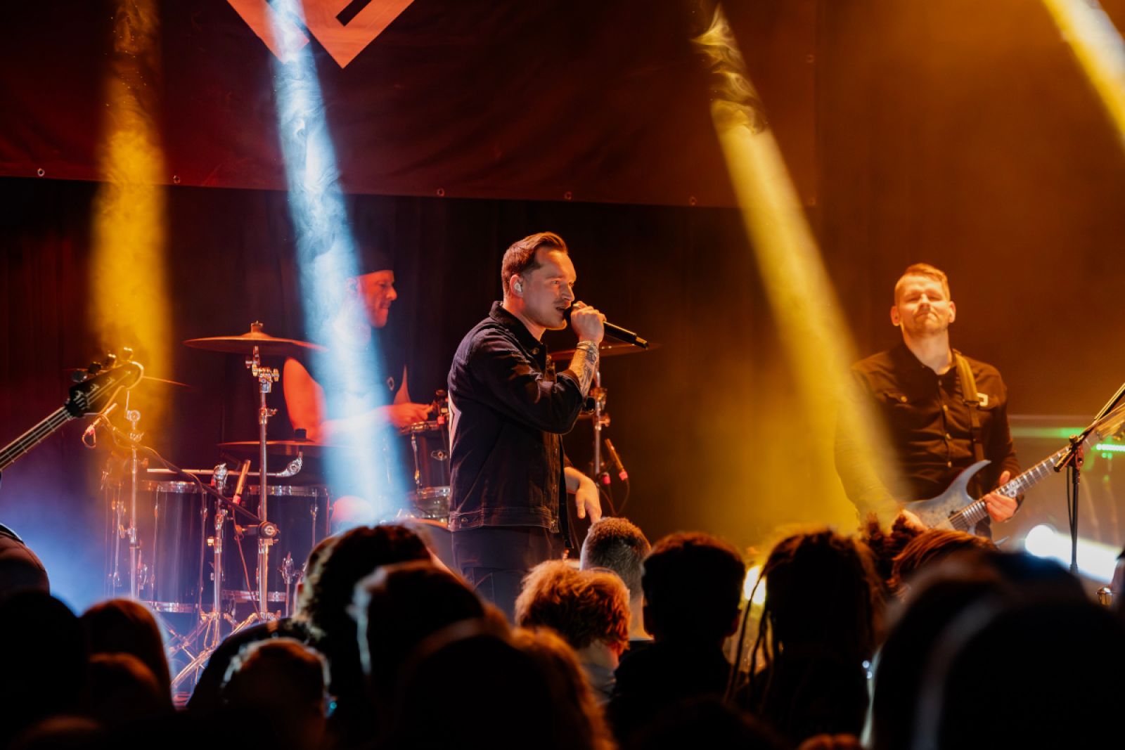 Um 22 Uhr dann endlich die Performance, auf die Familie, Freunde und vor allen Dingen auch Fans gewartet hatten. Die Gastgeber des Abends BUCKETLIST betraten endlich die Bühne, um das Publikum in den nächsten 75 Minuten auf eine musikalische Reise durch die letzten 8 Jahre mitzunehmen. Und natürlich gehören auch Emotionen zu einem richtigen Jahresabschluss. Und so ließ es sich Sänger Chris Härke nicht nehmen, sowohl über Erfolge als auch Zweifel zu sprechen, die ihn und seine Bandmitglieder - Sebastian Tittel und Timo Lohrenz an den Gitarren, Jeremias Hampe am Bass sowie Hannes Westendorf am Schlagzeug - auf dem gemeinsamen Weg bewegten und bewegen.