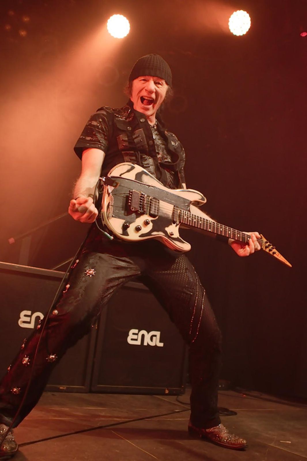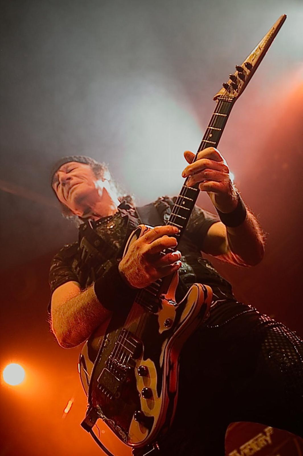 Dass VICTORY an diesem Abend auch dabei sind, hatte ich vollkommen verdrängt. Es wurde mir erst klar, als Axeman Herman Frank vor der Halle auftauchte. Obwohl die Wahl-Hannoveraner mit „Circle of Life“ ein aktuelles Album auf dem Markt haben, wurde für die Tour ein „Best Of“ Set angekündigt. Und man darf sagen, dass die Band Wort gehalten hat und ein wirklich grandioses Set abgeliefert hat. Dabei fügten sich die aktuelleren Songs „God of tomorrow“ sowie „Surrender My Heart“ und „Tonight We Rock“ perfekt ins Set ein. Herman Franks vor einigen Jahren runderneuerte Band lief wie ein Uhrwerk und wenn man irgendwo farbige Bandanas am Gürtel tragen durfte, dann hier und heute. Michael Pesin (Git.) und Herman Frank duellierten sich nicht nur mit ihren Äxten, sondern buhlten auch um den Preis des schönsten Cowboystiefels. Malte Burkert war ja die letzte Frischzellenkur bei VICTORY und der Basser sorgte heute mit seinem wummernden Bass für den passenden Herzschlag der Hard Rocker, während Drummer Michael Stein wie ein mechanischer Schmiedehammer auf seine Kessel drosch. Während viele ältere Fans der Band wohl den Zeiten mit Charlie Huhn am Mikro nachtrauern, fand ich den ehemaligen CHATEAU Sänger Jioti immer unglaublich stark und passend für den Sound von VICTORY. Dementsprechend glücklich bin ich auch mit der Arbeit seines Nachfolgers Gianni Pontillo. Der Schweizer erinnerte optisch zwar etwas an einen wenig vertrauenserweckenden Versicherungsvertreter, lieferte Gesanglich aber richtig fett ab und kam durchweg sympathisch rüber. Zumal er sich geschickt aus einem Fettnäpfchen herausmanövrierte, nachdem sich herausgestellt hatte, dass der von ihm angekündigte Song gar nicht aus den 80ern stammte, sondern aus den 90ern. Schwamm drüber.