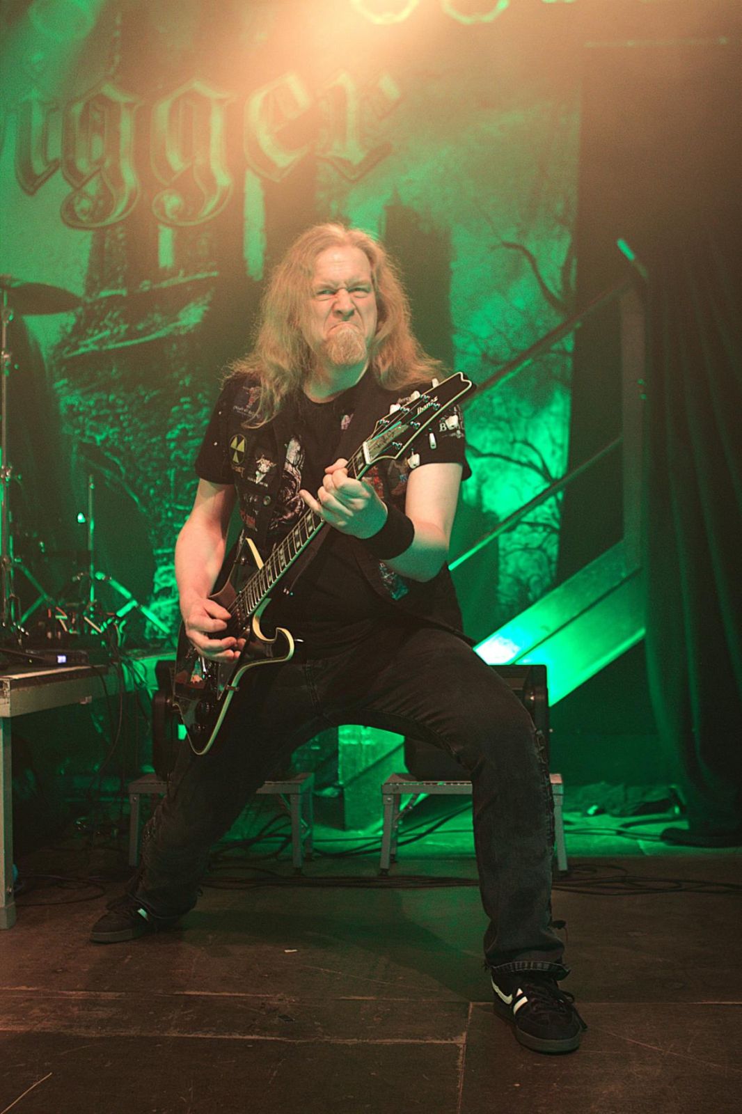 Nachdem sich im Hause GRAVE DIGGER in den letzten Jahren die Routine zu sehr eingerichtet hatte, wirkte der Weggang von Axel Ritt und die Verpflichtung von ex-ORDEN OGAN Klampfer Tobias Kersting wie eine ordentliche Ladung Febreze Raumduft: Wie weggefegt war der Teutonic Metal Muff der letzten Jahre und die gesamte Band wirkte unglaublich frisch und spielfreudig. Und auch hier zahlte es sich aus, dass der Bass von Jens Becker ein ordentliches Fundament legte und gut hörbar war, während der neue Mann an der Axt mit Powerstellung und jeder Menge Grimassen begeistern konnte. Dass der Neuzugang trotz aller Eigenständigkeit an die Ära Lulis anknüpfen wollte, zeigte sich auch in der Wahl der Gitarre: Oder hatte Uwe gar keine Iceman? Ich bilde mir ein, er hatte eine.