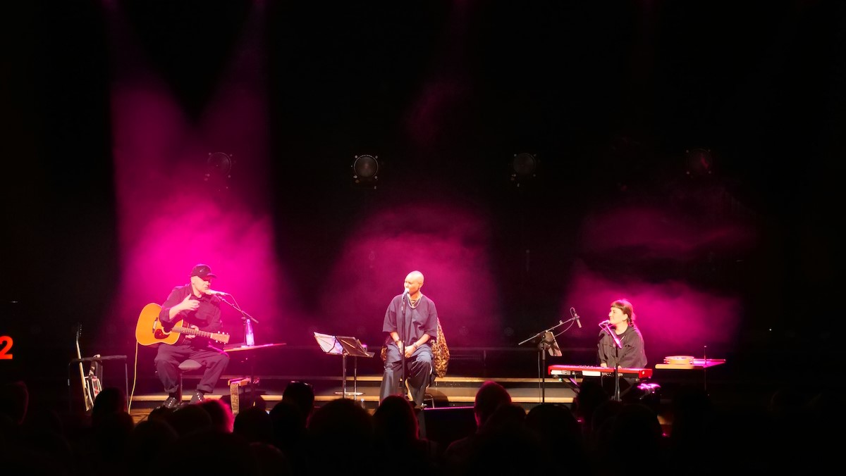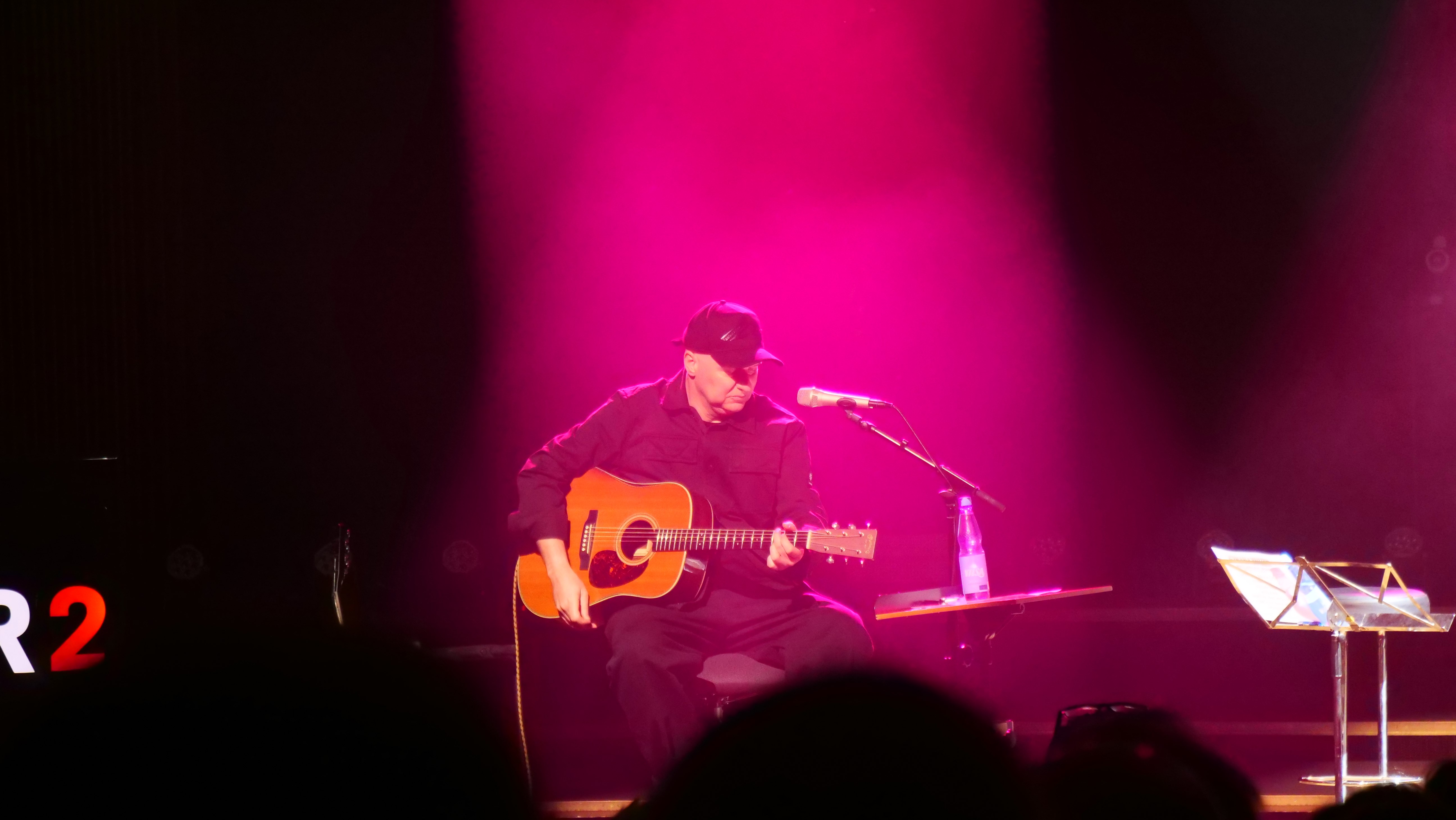Der Kleine Sendesaal fasst 330 Plätze verteilt auf Rang und Parkett. Und der war voll. Die Bühne gab schnell Klarheit darüber, dass es ein Akustikset werden würde im Trioformat.Ab 1830 Uhr begannen die Gäste in den Sendesaal zu strömen.