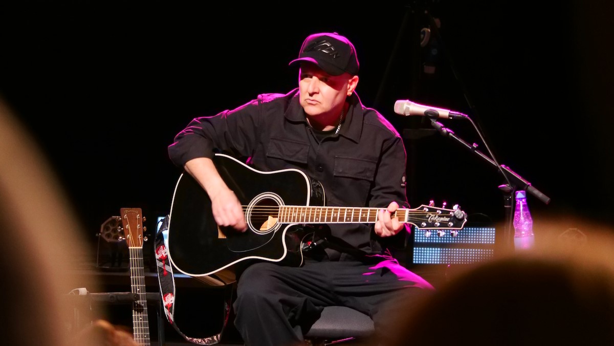 Er führte sehr unterhaltsam aus, wie eine bloße Idee immer weiter gesponnen wurde, immer mehr Entitäten hinzutraten (Rechtsabteilung, Label, Management), aber für ihn gar nicht klar genug kommuniziert war, dass diese Idee tatsächlich fliegt. Irgendwann stellte er die Frage aller Fragen. Und es wurde ihm bestätigt. - Wahrscheinlich wie Klaus Kinski [im kinskischen Ideolekt sprechend]: "Ich versteh' die Frage nich'!" Zurecht erhielt er den Applaus des Publikums. Und dann erschienen Skin, Ace und Erika, die Frau des Skunk Anansie Schlagzeugers Mark Richardson, auf der Bühne.