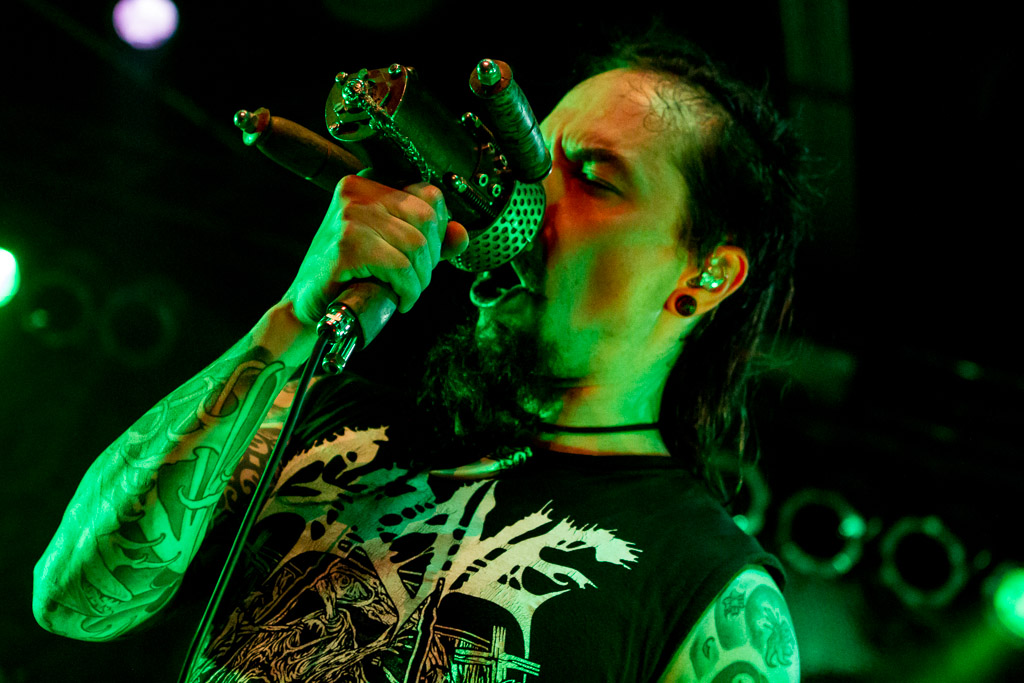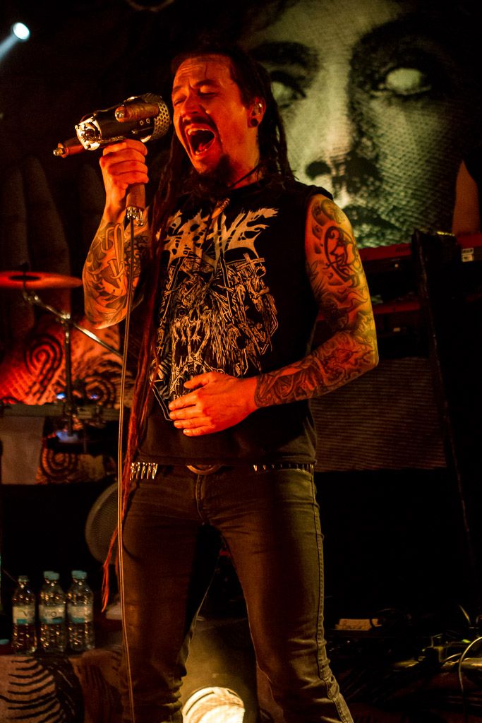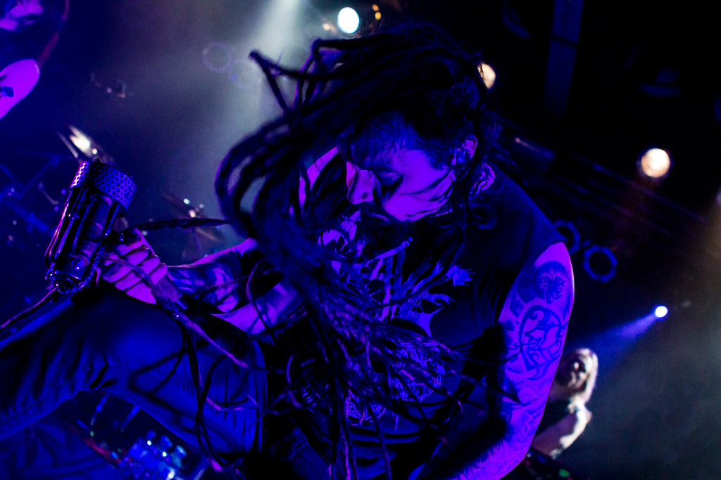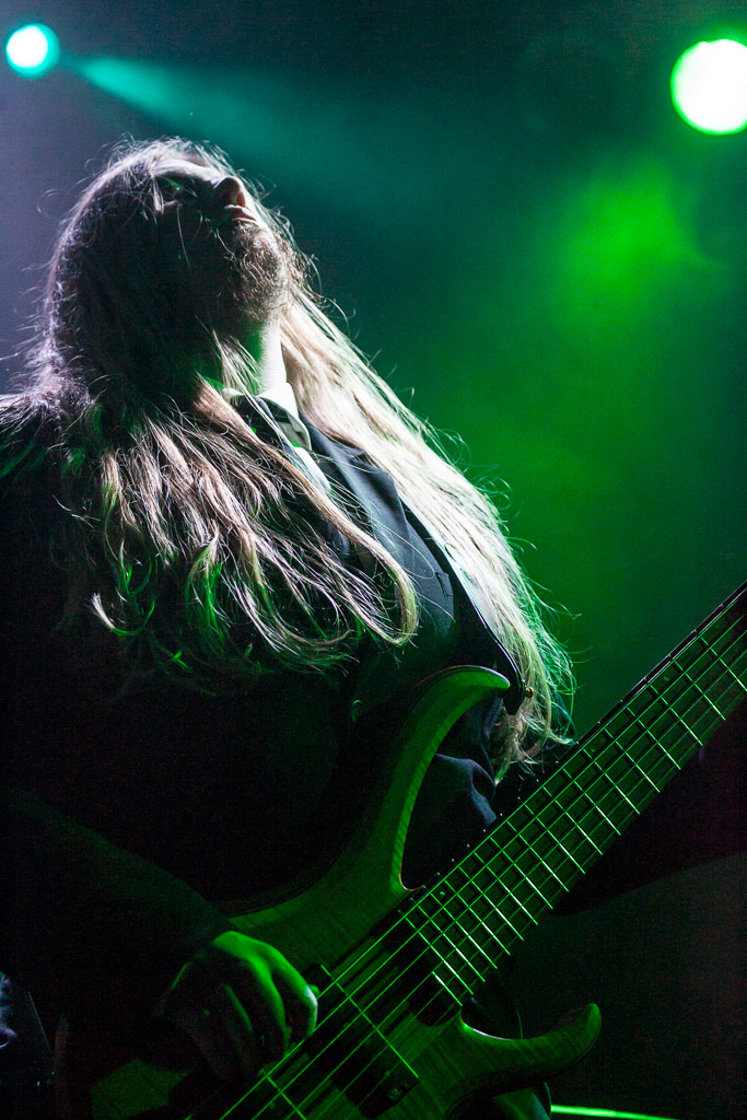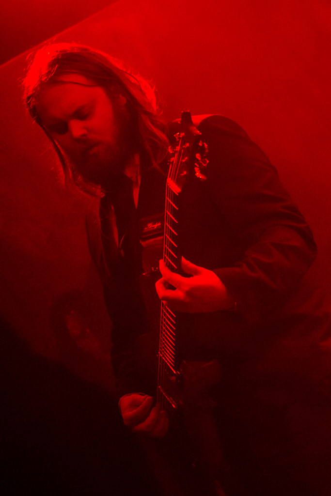 Bereits ordentlich gefüllt ist der Saal, als die Dänen ihr Spektakel pünktlich zur Tagesschau beginnen. Hamferd präsentieren ihr aktuelles Album „Evst". Musikalisch bieten sie klassischen, schwermütigen Doom Metal, der durchaus als eine etwas epischere Version der jüngeren Saturnus durchgeht. Die Songs – textlich in der Heimatsprache gehalten – werden von den sechs Musikern, die stilvoll in feinem Zwirn bzw. Anzügen auf der Bühne stehen, geradezu feierlich zelebriert. Das Stageacting ist erwartungsgemäß zurückhaltend, was nicht nur am begrenzten Raum durch die bereits aufgebaute Amorphis-Backline liegt, dafür setzt man die langen Doom-Epen durch dezente aber wirkungsvolle Licht-Effekte und typische Gesten ganz gut in Szene. Die tiefen Growls von Sänger Jón sind dabei so wundervoll erdig, wie der kehlige Klargesang gewöhnungsbedürftig ist. Trotzdem kommen Hamferd gut an und sind mit Sicherheit ein Hoffnungsträger für Doom-Jünger. Zwar kann man den Genre-Größen noch kein Wasser abgraben aber die Band bietet ein solides, stimmiges Programm, das den Abend durchaus bereichert...