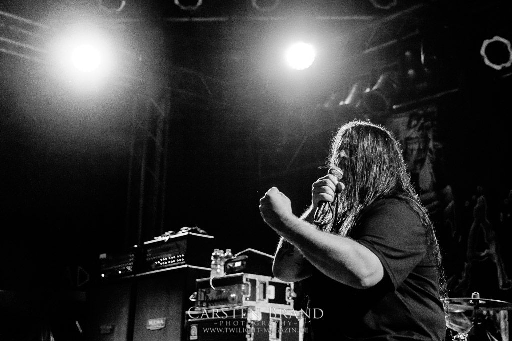 Es folgt die obligatorische Umbaupause und bevor der Corpsegrinder loslegen kann dauert es eine Weile, bis der Soundcheck durch ist und alles passt.