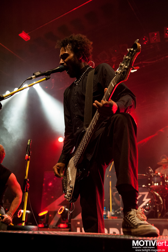 Emil Bulls sind endlich wieder auf Tour und haben nach einer längeren Aufnahmepause wieder die Zeit und Kraft gefunden, die Bühnen dieses Landes zu rocken. Und das tun sie. Emil Bulls haben immer noch den "Wir sind die Jungs von nebenan"-Faktor, der die ganze Show greifbar und Publikumsnah macht. Leider spielt in Frankfurt meist eine andere Musik und so verhallen die Fanrufe zu den zwei Zugaben doch recht schnell in der Dunkelheit der neuen Batschkapp. Als gestandene Profis, die sie eben doch sind, lassen sich die fünf Jungs auf der Bühne aber nicht davon beeindrucken und bringen am Ende gute 90 Minuten Programm zusammen.