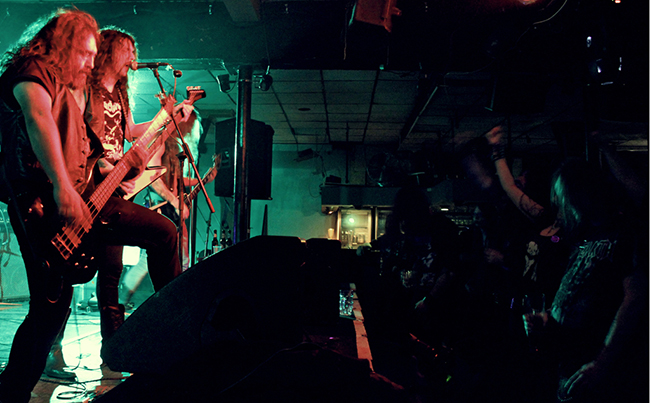 Der Raum vor der Bühne ist dezent gefüllt, mehr als 35 Personen sind nicht anwesend. Davon lassen sich ISOLE aber nicht im geringsten negativ beeindrucken. Man merkt ihrem Zusammenspiel die Freude an der gemeinsamen Sache an. Der im Schatten verborgene Drummer hat Spaß am spielen und die anderen drei Herren zeigen nicht nur an ihren Saiten-Instrumenten ihr Können sondern auch im Gesang. Besonders bei den dreistimmigen Parts wird man hier überaus positiv überrascht. Lediglich die technischen Probleme mit den Gitarren trüben das Erlebnis etwas und so gehen die teilweise stoner-lastigen Melodien bei den prägnanten Gesangseinlagen leider manchmal komplett unter. Dennoch, Fans von Candlemass und The Foreshadowing bekommen bei dieser Gruppierung bestimmt Herzklopfen. Und bei Songs wie "By Blood" und dem Black-Metal-geprägten "Moonstone" vom ersten Album kommt auch etwas Bewegung in die Menge.