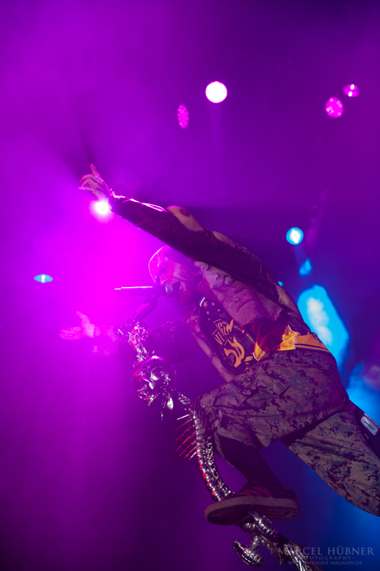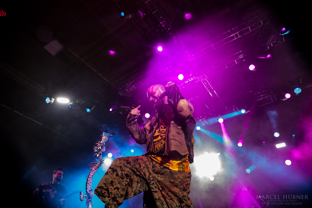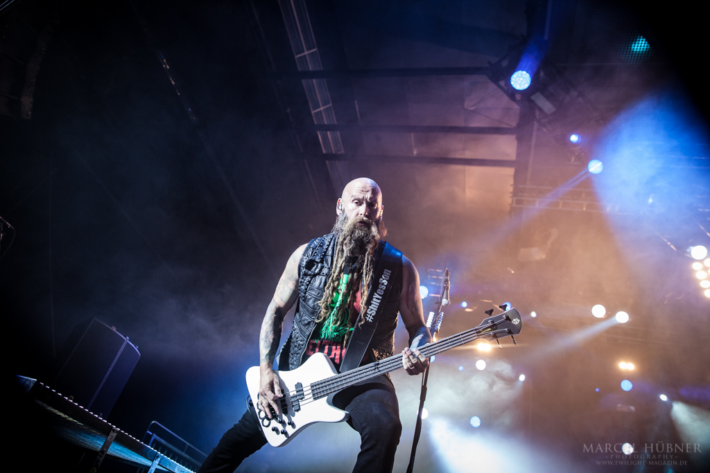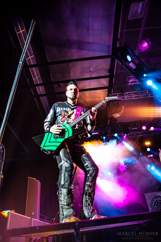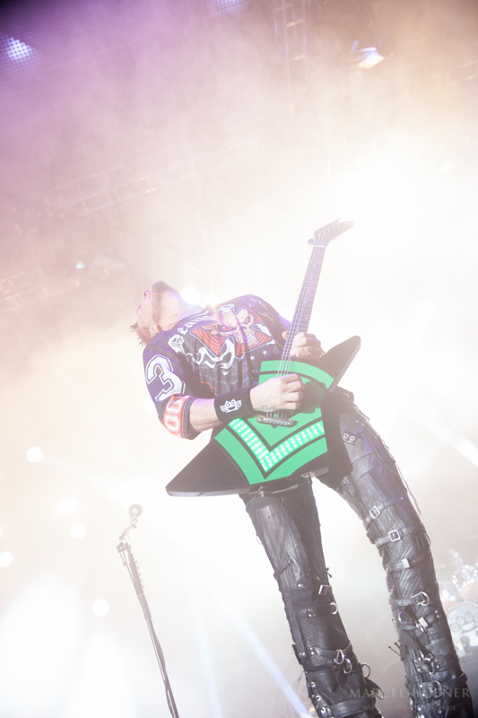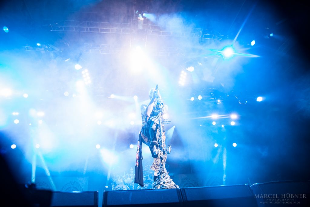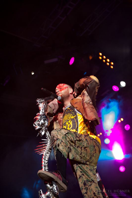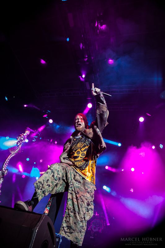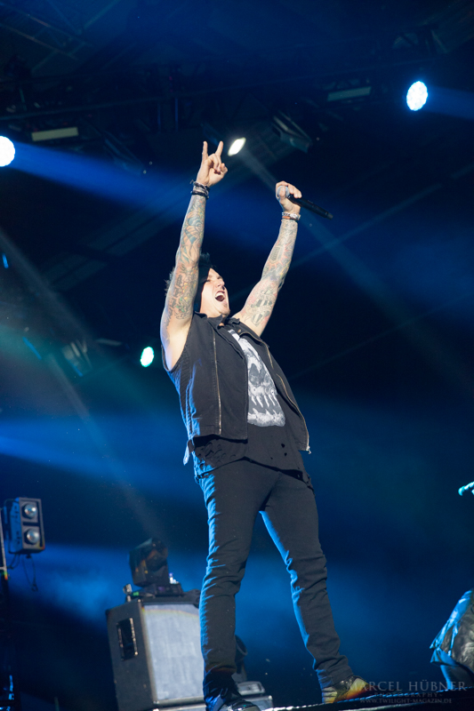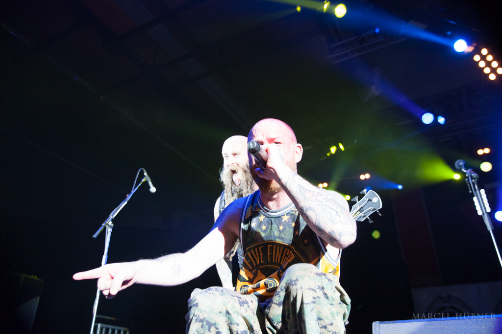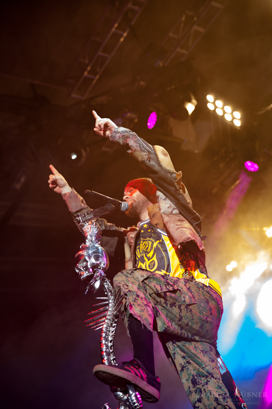Als Five Finger Death Punch an der Reihe waren, war das Publikum wach und gab Vollgas. Sänger "Ghost" Mody spielte mit dem Publikum und selbst ein Trikot der Deutschen Fußball Nationalmannschaft durfte bei seinen Outfits nicht fehlen. Leider hatte er einige Probleme mit dem Mikrofon, was aber dank der überrangenden Lichtshow und dem fast perfekten Set unterging.