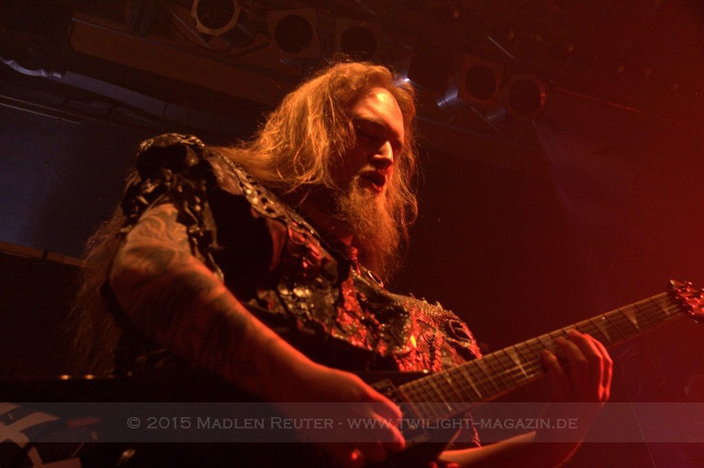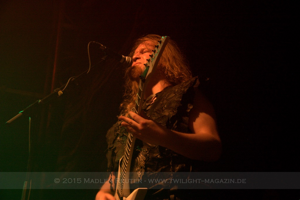 Als nächstes standen dann ORDEN OGAN auf der Agenda. Wie schon bei SERIOUS BLACK war der Sound eher mittelmäßig abgemischt. Das Schlagzeug war auch hier viel zu laut und übertönte alles andere. Allerdings war das Schlagzeug hier wirklich passig, denn das hat mal so richtig geknallt. Da hätte man nur die anderen Regler etwas nach oben schieben müssen und es wäre richtig geil gewesen. Insgesamt war der Sound hier allerdings schon deutlich besser als beim ersten Act des Abends. Zwar wurde die Lichtshow hier etwas düsterer und stimmungsvoller, war aber dennoch recht langweilig.