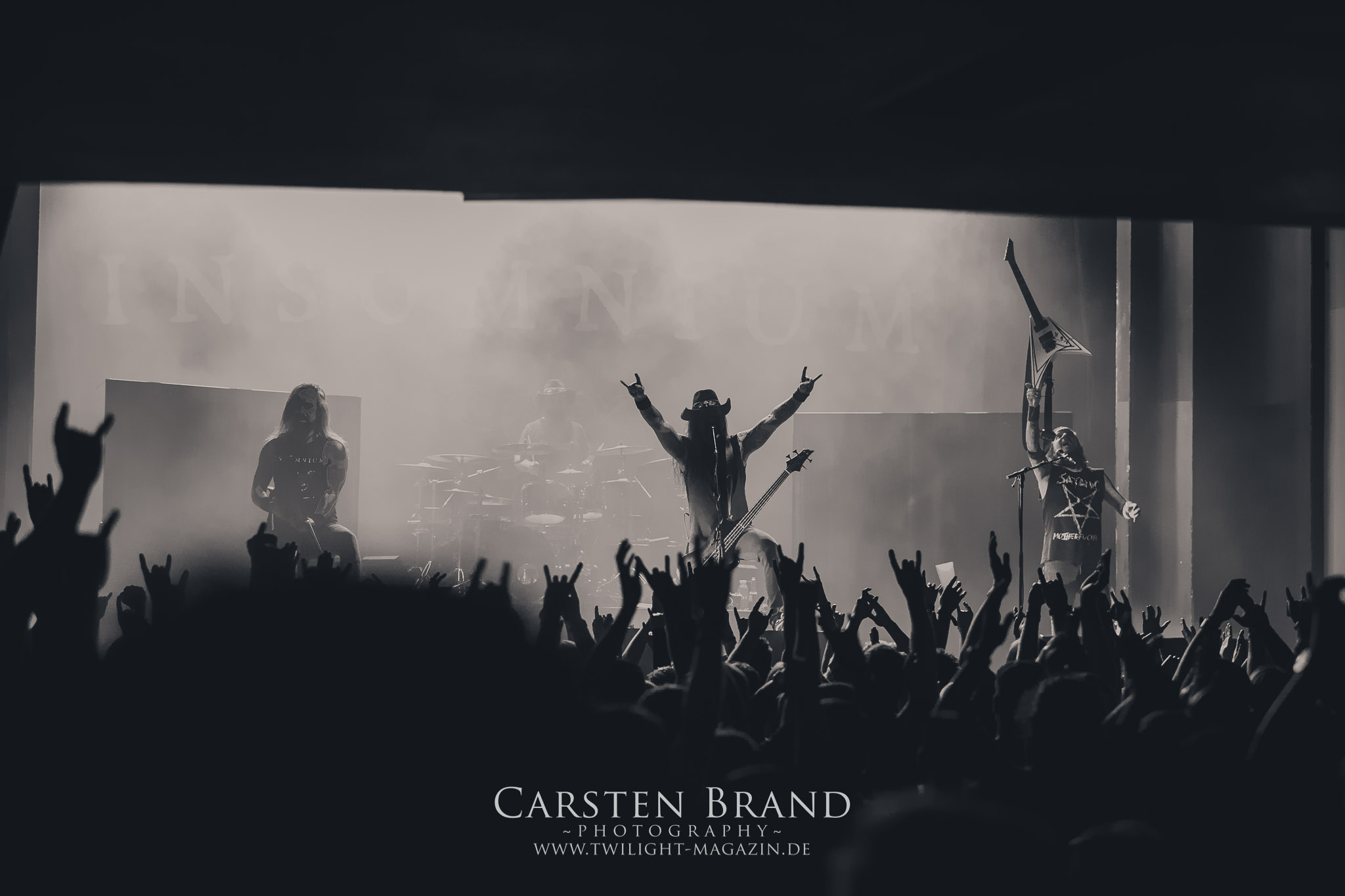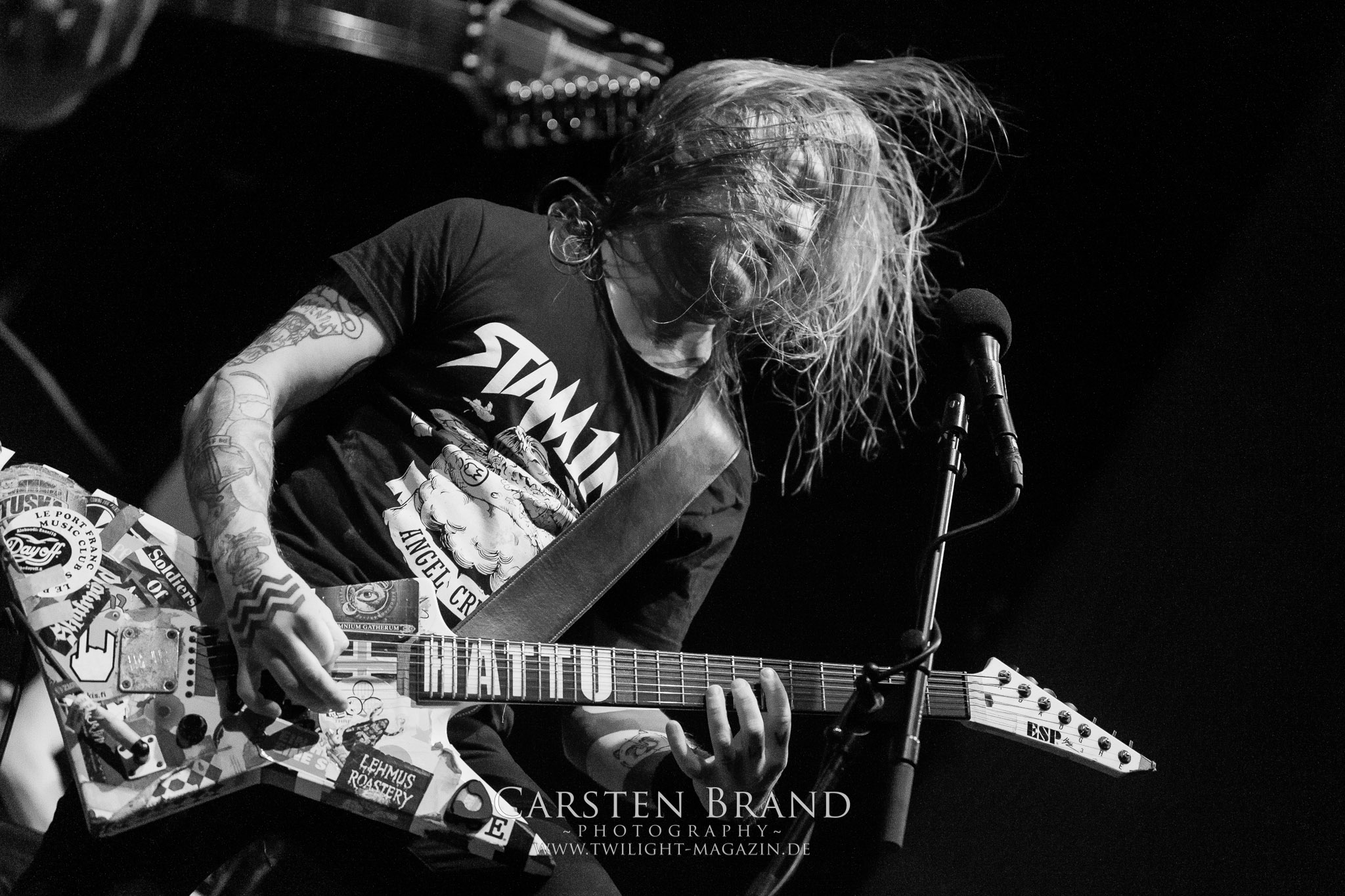 Im kuschelig warmen Innenbereich erwartete die illustre Meute dann ein schickes Package, welches mit den Finnen Stam1na als Anheizer und den Amerikanern The Black Dahlia Murder als Appetizer die Vorhut zu Insomnium bildete.