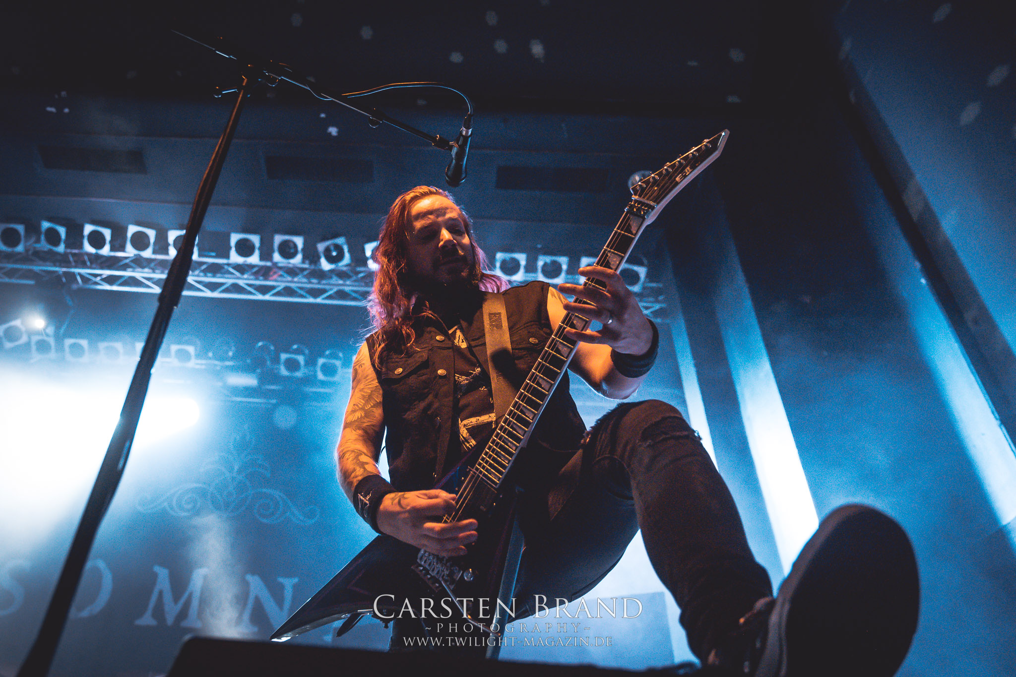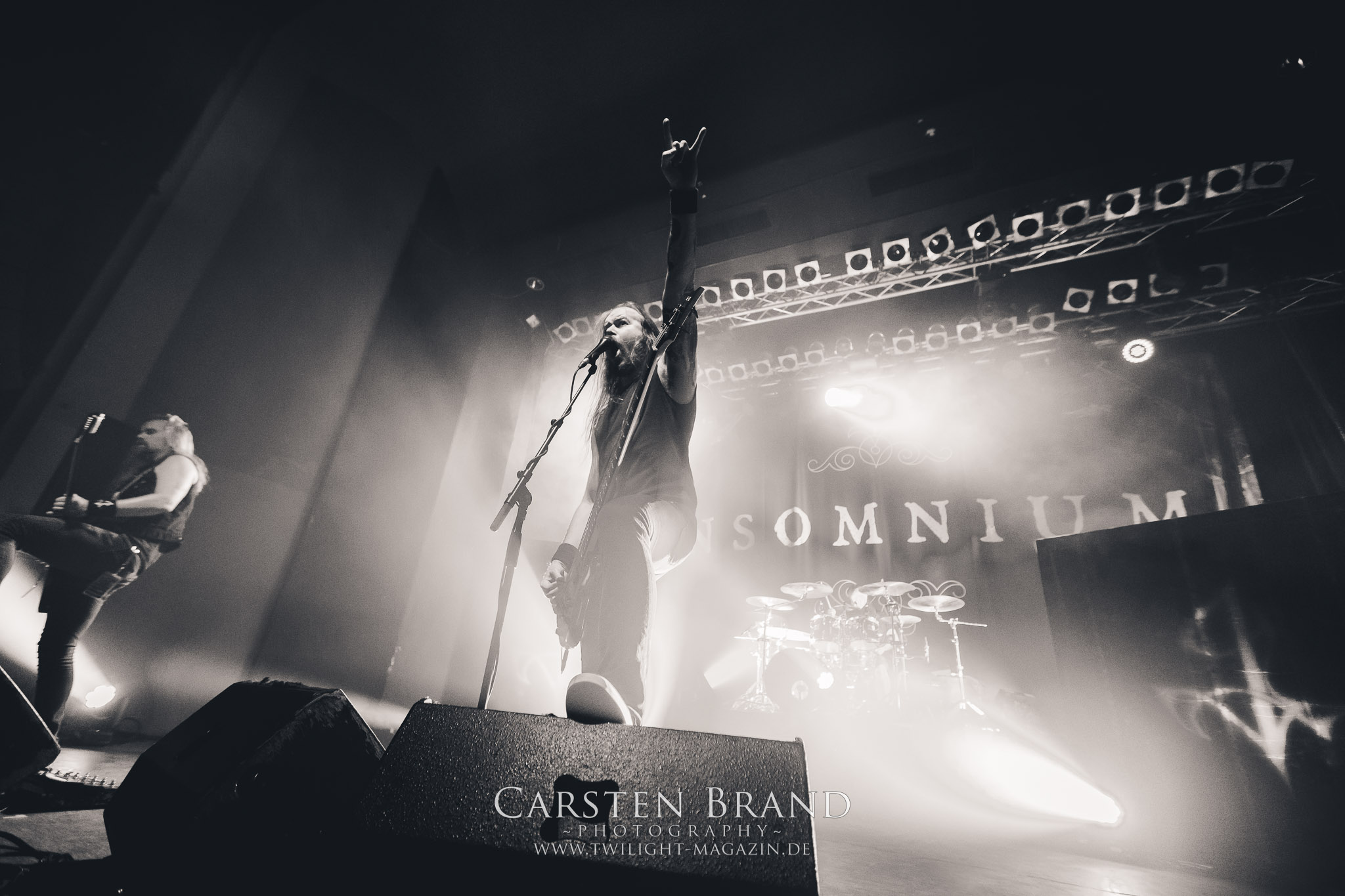 Insomnium machten es nach der nun letzten Umbaupause des Abends spannend und ließen etwas auf sich warten. Mit AC/DC´s "Highway to Hell" wurde lautstark das Intro eingeläutet.....hätte man auf Grund der Lautstärke denken können....was sich aber zum Glück als leichte (und vielleicht absichtliche?) Irritation herausstellte. Nach einem kurzen Intro ging es ohne Umschweife mit "Valediction" los. Gefolgt von "Neverlast", um damit auch gleich die ersten beiden Songs des aktuellen Albums "Heart like a