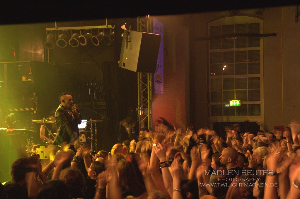 Auf meinem Weg nach Hannover habe ich mich schon einmal von der passenden Musik beschallen lassen und dadurch stieg auch meine Vorfreude auf den Abend. Einlass war um 19 Uhr und auch eine halbe Stunde später, war noch eine lange Schlange vor der Tür anzutreffen. Kaum hatte ich den Einlass überstanden, wurde mir auch bewusst, wie voll es jetzt schon war. Das konnte ja nur ein gutes Zeichen dafür sein, dass der Abend super werden würde. Und egal wohin man blickte, sah man nur Vorfreude in den Gesichtern.