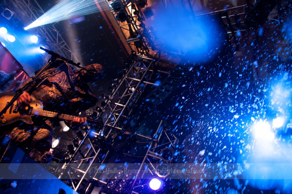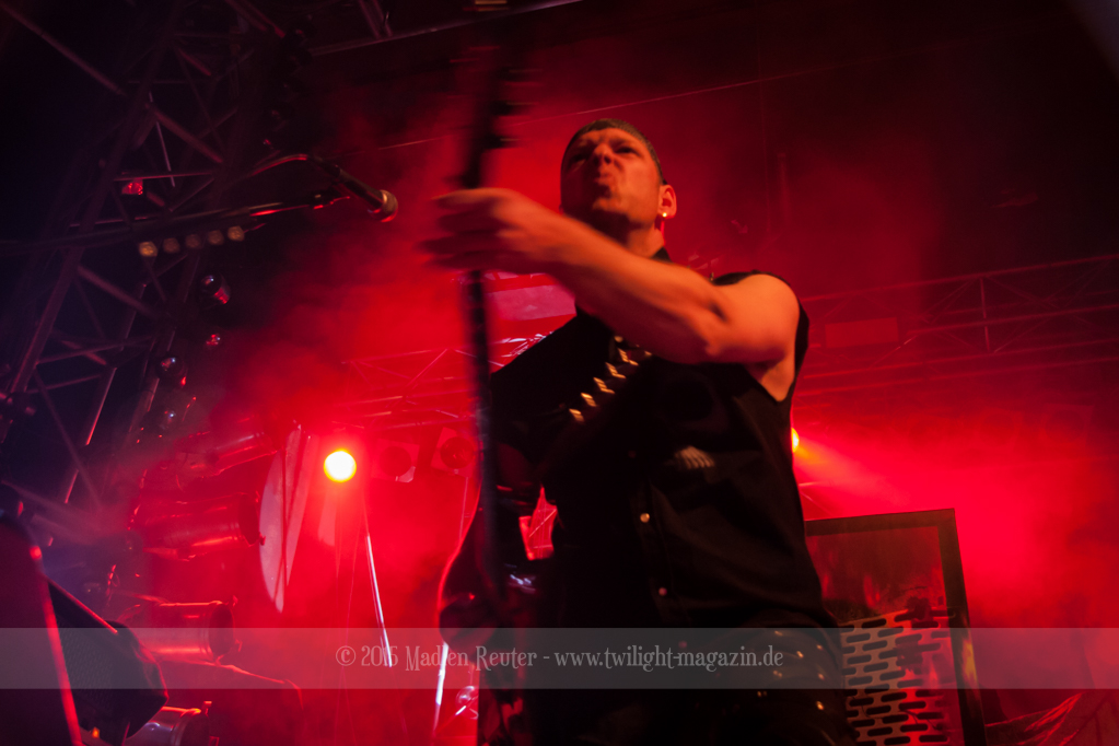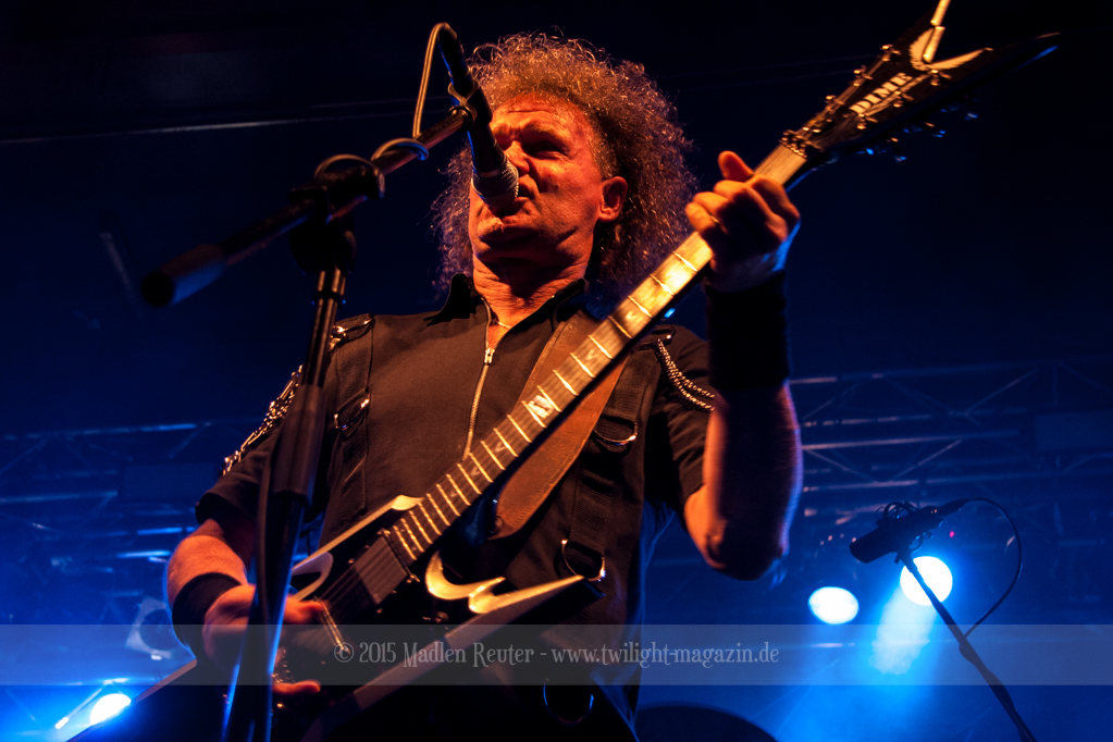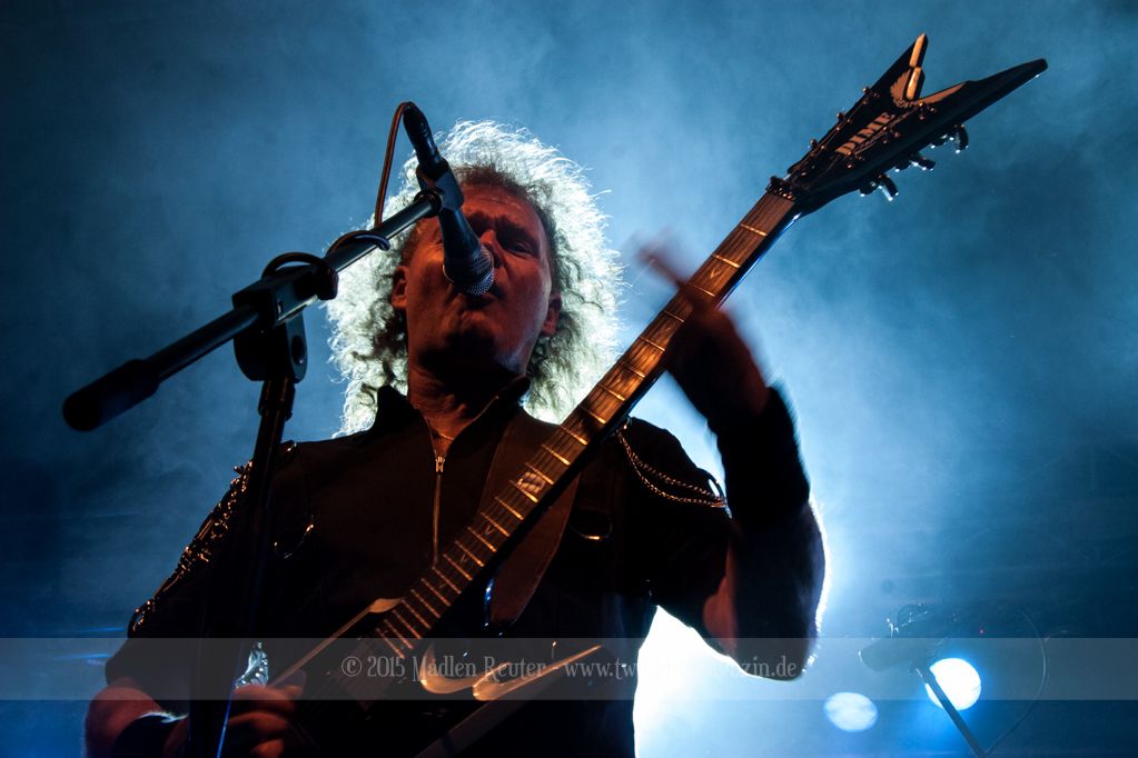Zum Aufwärmen brauchte es da nur den richtigen Supportact. Zum Glück hatten die Finnen hierfür die Rheinländer von PALACE mit dabei. ACCEPT küsst RUNNING WILD, so würde ich die Band kurz beschreiben. Schon seit über 30 Jahren im Geschäft, wissen die Herren wo der Frosch die Locken hat und gingen dementsprechend in die Vollen. Bei diesem Hard Rock blieb kaum noch jemand unberührt und mehr Leute begaben sich vor die Bühne. Spitzenmäßiger Sound, geile Songs und sehr solide Performance – rundum ein sehr gelungener Auftritt. Und auch ein würdiges Abschlusskonzert (für sie war es die letze Show auf dieser Tour) für die Vier. Auch um Interaktion mit den Leuten waren die Urgesteine sehr bemüht und auf diese wurde auch dankend eingegangen. Ein einziges Problem bestand darin, dass der übereifrige Gitarrist ein Drum-Mikro umgehauen hatte und dadurch kurzzeitig Soundprobleme auftraten. Die wurden allerdings flott behoben und schon konnte ordentlich weitergerockt werden. PALACE haben fleißig bei dem Publikum gepunktet und haben die Meute für die Monster auch dementsprechend aufgewärmt.