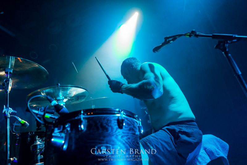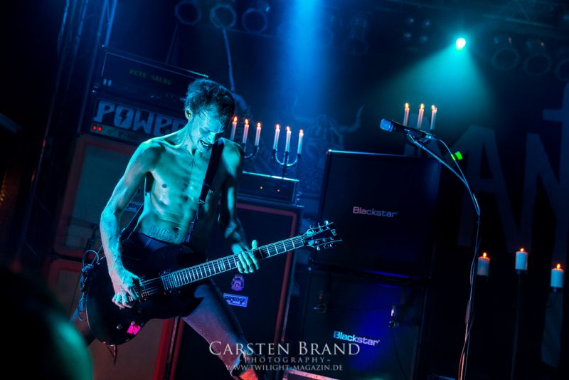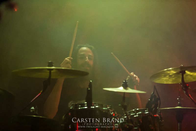 Zumal Sänger Adam nicht nur optisch einem gewissen Tompa ähnelt, auch wenn er stimmlich nicht so variabel und extrem agiert. Hier und da sind noch ein paar Schwarzmetall-Einflüsse heraushörbar. Aber obwohl die Jungs in der Co-Headliner-Position vom Publikum ordentlich abgefeiert werden ist sind mir viele der Songs zu gleichförmig, so dass in der guten Stunde des Gigs deutliche Längen aufkommen. Da mag sich Adam noch so gut ins Zeug legen, beeindruckender ist da doch die lässige wie knochentrockene Drum-Performance von Wandertrommler James Stewart, der u. a. bei Vader aber auch bei den Niedersachsen von Deny The Urge die Stöcke schwingt. Ich möchte die Leistung von Skeletonwitch hier keineswegs schmälern aber in Sachen Eigenständigkeit (Deathrite, Evil Invaders, Mantar) und Intensität (Evil Invaders) ziehen sie in diesem musikalisch großartigen Billing aus meiner Perspektive eindeutig den Kürzeren.