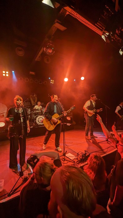 Nach dem blutrünstigen „Boston Wedding“ manövrierte die Truppe in ruhigere Gewässer und mit „If I’m Not Long for This World“, „“Poor Irish Billy“ und „I Only Like You When I’m Drunk“ gab es dann gleich einen Tripple mit getragenen Songs, was dem ganzen Gig etwas den Schwung nahm und für ein wenig Langeweile sorgte. Dies schienen auch andere Fans so zu empfinden, denn als es mit „My Love Is Back from America“ weiterging, hatte man im Zuschauerraum wieder merklich mehr Platz. Den nutzen die angetrunkenen Speed Folk Fans vor der Bühne dann für einen ausgewachsenen Pogo zu „We’re All Irish on St. Patrick’s Day“, welches sich live noch besser machte, als auf Platte. Den Abschluss des regulären Teils bildete erwartungsgemäß das Traditional „The Parting Glass“, zu dem es lustige Leuchtstäbchen für das Publikum gab.