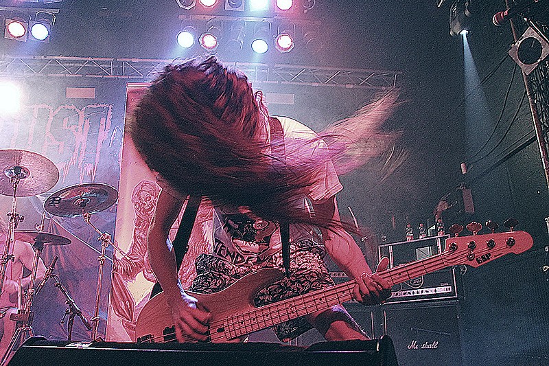 Zu seniorenfreundlichen Zeiten kündigten sich dann OBITUARY durch ein minutenlanges dumpfes Brummen an. Was früher als technische Störung für Aufregung bei der Crew sorgte, wird heute als innovatives Intro gefeiert. Doch schließlich ging es los und rein optisch stellte sich die Frage, ob man OBITUARY nicht auch gerechterweise als Hair Metal Band führen sollte.