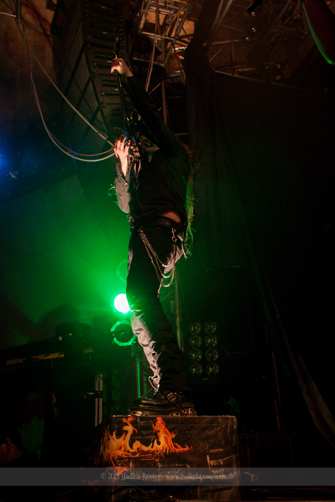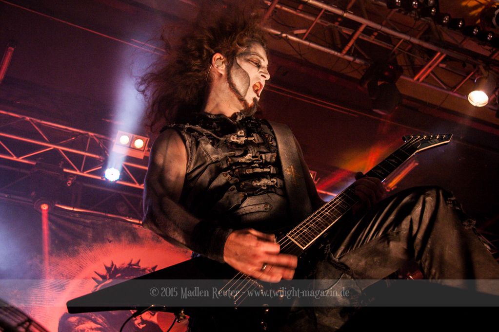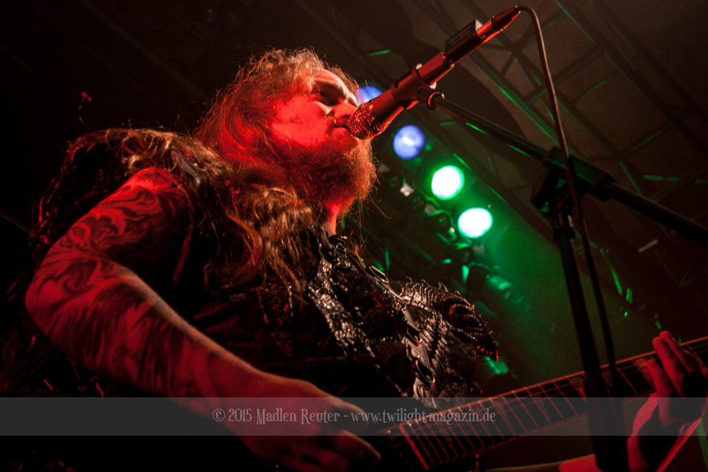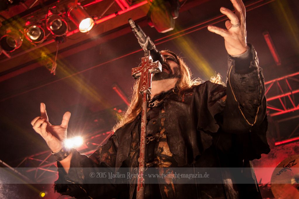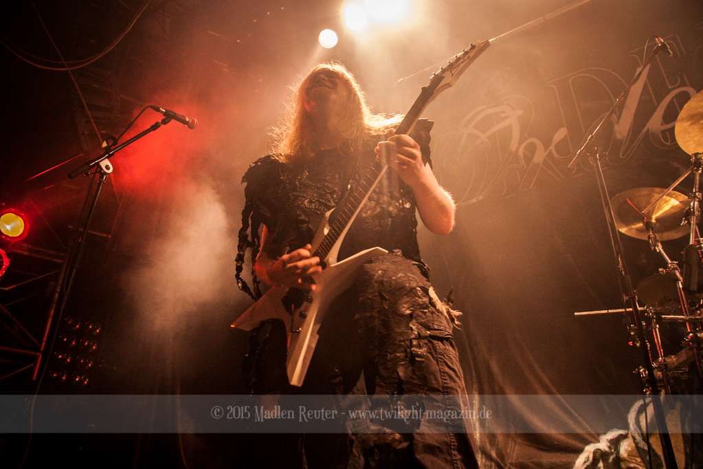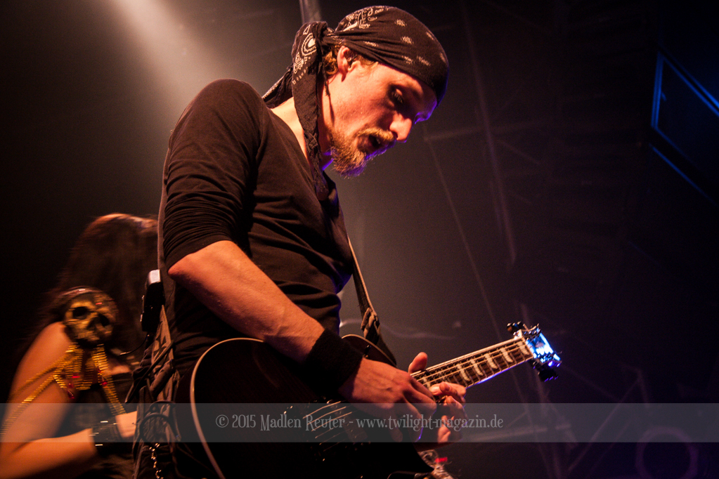 Nach kurzem Umbau wurde es dann Zeit für einen kurzen Ausflug nach Ravenhead. ORDEN OGAN übernahmen das Ruder und heizten den Anwesenden fleißig ein. Neben beeindruckenden Soli, fetten Riffs und brachialen Mitgröhlhymnen bestach die Band auch durch ihren Humor. Sänger Seeb erntet für seine lustigen Ansagen mehrfach Applaus. Auch sonst ist das Publikum fleißig dabei. Zwar brauchen die Besucher meist eine kurze Aufforderung, aber dann läuft es auch wie geschmiert. Die Setlist schien vor allem einen Schwerpunkt auf das neue Album („Ravenhead“, 2015) gesetzt zu haben. Grandios war es „Sorrow Is Your Tale“ live zu erleben, auch wenn mir „To New Shores Of Sadness“ eindeutig gefehlt hatte. Während vor der Bühne die Haare flogen, zockten Tobi und Seeb beeindruckende Soli auf ihren Gitarren. Dieses Teamspiel ist wirklich herrlich mit anzusehen. Und auch an diesem Abend fand sich wieder eine verirrte Seele, die mit lautstarken „Noch Ein Bier“-Rufen Aufmerksamkeit erhaschen wollte. Einzig richtige Reaktion vom Ordensoberhaupt: „Falsche Band man!“. Damit hatte sich die Geschichte für den restlichen Abend erledigt – Vielen Dank!