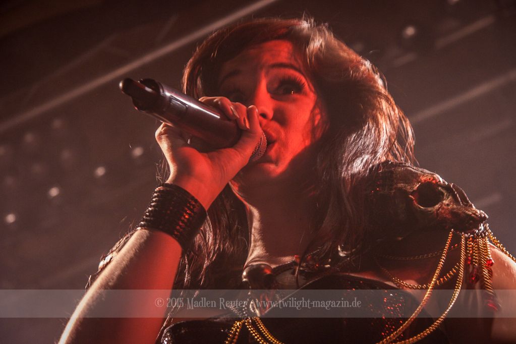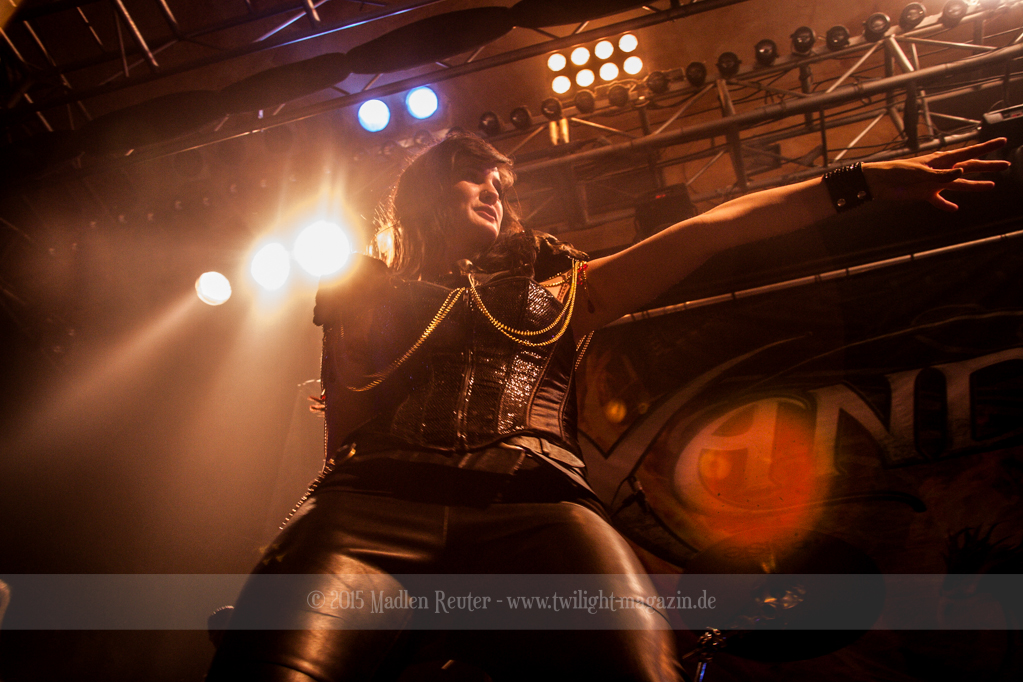 So konnte bereits XANDRIA von einem höchst motivierten Publikum profitieren. Sängerin Dianne van Giersbergen weiß ihre charmante Art gekonnt einzusetzen, und wickelt damit die Menge um den Finger. Aktives Bangen und Hüpfen standen auf der Tagesordnung, sowohl bei der Band selbst, als auch vor der Bühne. Ich war positiv überrascht, denn vorab wusste ich nicht so recht, was mich erwarten würde. Die Fronterin hat ihre Stimme vollends unter Kontrolle und ernsthafte Ohrenschädigungen bleiben somit aus – Puh! Auch die Saitenfraktion interagierte freudig erregt mit dem Publikum, und untereinander.