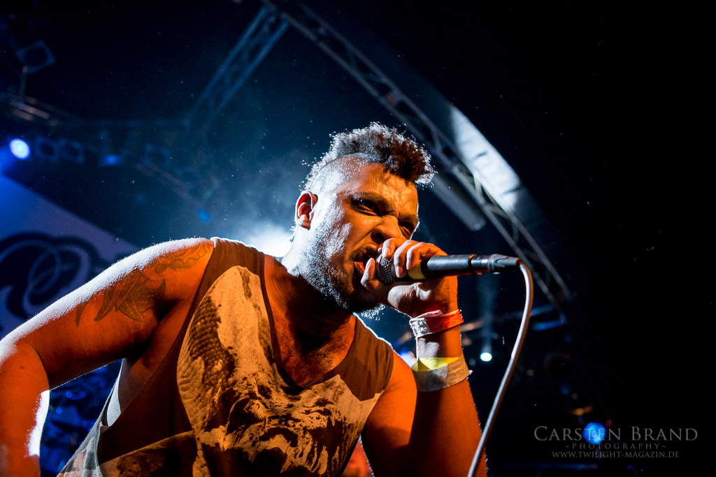 OSLO FAENSKAP haben die Aufgabe, die Besucher in der Markthalle aufzuheizen. Wobei die Temperaturen schon weit über gemütlich liegen. Eine Mischung aus Metalcore, harten Riffs und gekonnten Break Downs überzeugt nicht jeden in der Halle, die ersten machen sich jedoch fleißig vor der Bühne warm. Besonders Lars am Gesang überzeugt mit einer unheimlichen Bühnenperformance und es scheint, als würde er nach Sprüngen und zurückgelegten Bühnenmetern bezahlt.