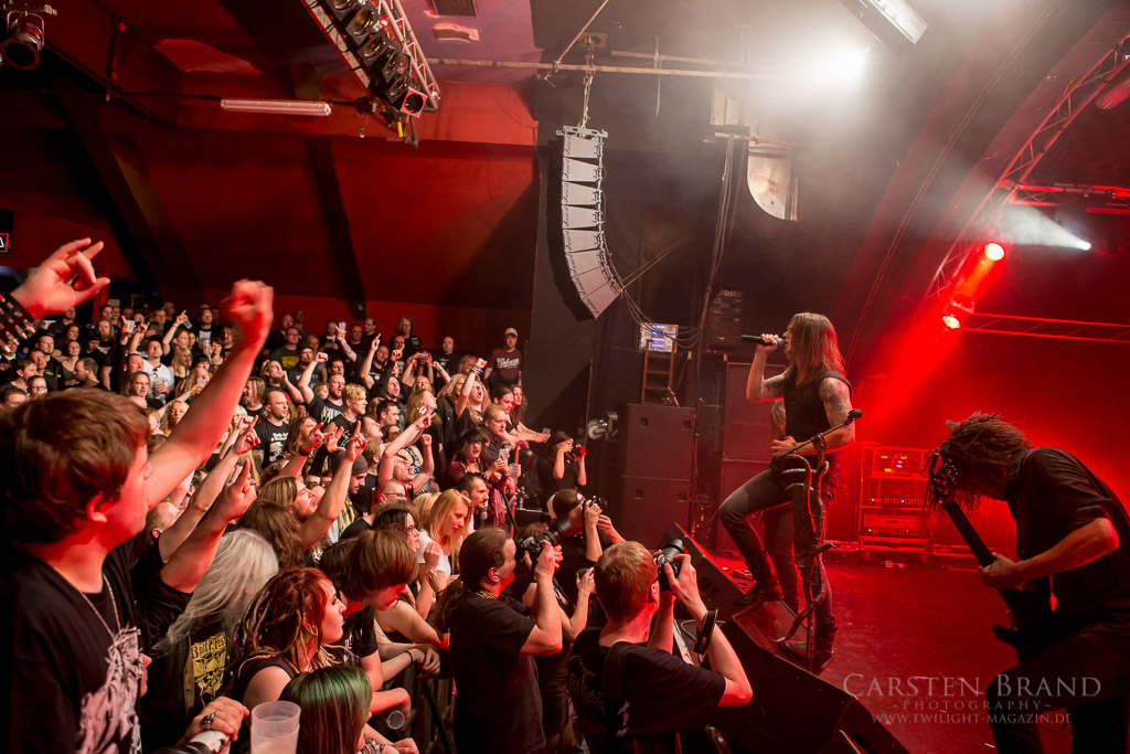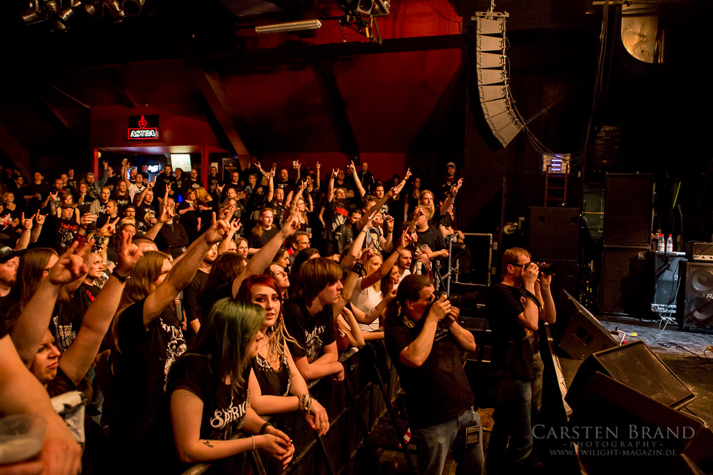 Nach kurzer Umbaupause geht es mit VREDEHAMMER weiter. Ähnlich wie bei Satyr und Frost agiert auch hier ein Duo und wird durch Session Musiker verstärkt. VREDEHAMMER überzeugen durch ihren ganz eigenen Stil, wenngleich sie sich dem traditionellen norwegischen Black Metal zuordnen lassen. Ein unermüdliches Schlagwerk gibt die Marschrichtung vor, filigrane Gitarren fräsen den Weg frei und der Gesang marschiert munter voraus und schafft die gewohnte frostige Atmosphäre. Im Publikum werden fleißig Haare geschüttelt und die Meute mag sich kaum satt sehen. So gibt es zwei Zugaben, und zur Überraschung noch ein weiteren Titel obendrauf, da offenbar noch Zeit vom Slot übrig war.