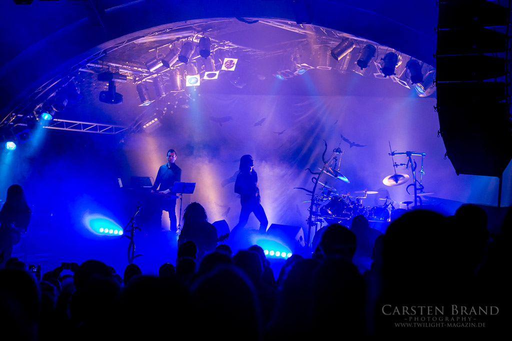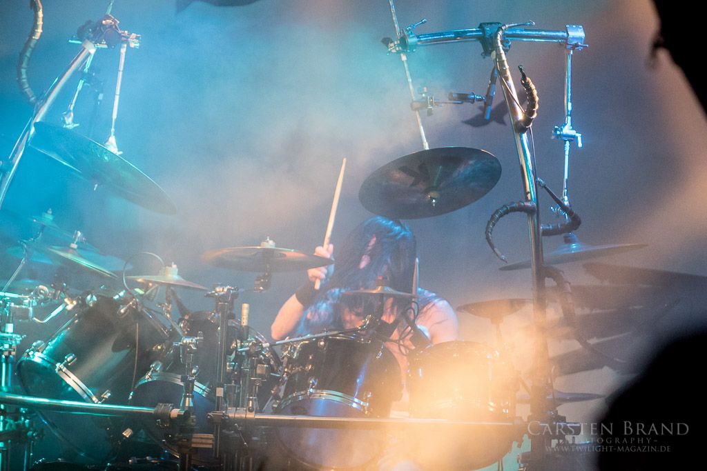 Zeit für den Headliner, der nach doch etwas längerem Warten auf die Bühne kommt. Das Licht geht aus, Nebelschwaden steigen empor und aus dem Dunkel betreten Frost und Co die Bühne. SATYRICON geben von Beginn an Vollgas und hinterlassen ein Schlachtfeld ohnegleichen. Nach kurzem Intro geht es mit "The rite of our cross" gleich dermaßen zur Sache. Die Markthalle hat sich noch einmal bedeutend gefüllt, und die Fans feiern frenetisch den Auftakt des Headliners. "Now, Diabolical" und "Black crow on a tombstone" bilden die Highlights im ersten Teil der Show. Auch im zweiten Teil widmen sich die Herren eher neueren Werken, besonders hervorzuheben sind "A new enemy" und "Tro og kraft". Als kleines Highlight ist im zweiten Teil auch der bereits im Netz vorveröffentlichte Track "Die by my hand" mit dem Norwegischen Nationalchor zu erwähnen. Satyr kündigt diesen mit vollem Stolz an und präsentiert ein sehr gelungenen Mix aus klassischem Orchesterchor und Black Meta l Band. Der Chor wird hierbei nur von Platte abgespielt. Die DVD "Live at the Opera" gibt es zudem im besonderen, limitierten Mediabook exklusiv am Merchstand zu erwerben.
