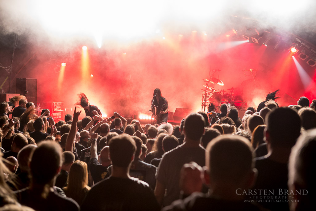Was bei einem SATYRICON Gig natürlich nicht fehlen darf ist "Mother North", welches fast schon zeremoniell gefeiert wird. Die Stimmung ind er Halle hat ihren Höhepunkt erreicht. Doch es folgen noch zwei Zugaben, bevor es nach Hause geht: "Fuel for hatred" schmettert einem das Schmalz nur so aus den Ohren und ist wohl einer der großen Klassiker. Mit "K.I.N.G" schließt sich die Setlist und beendet einen absolut großartigen Auftritt der Mannen Satyr und Frost.